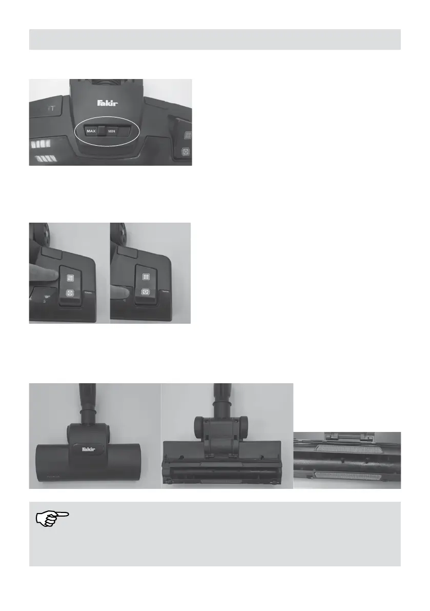 It is recommended to use turbo brush at maximum power on carpets and carpet