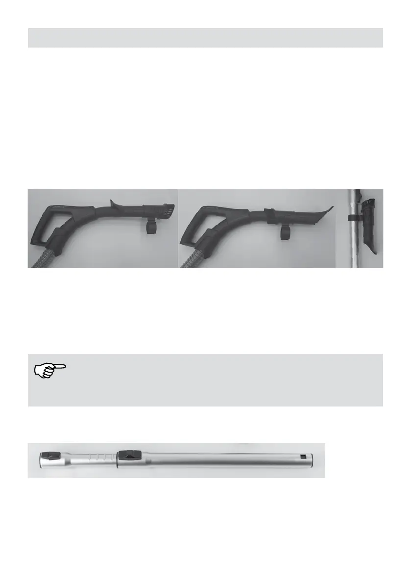 handle from the crevice nozzle end. You can use the crevice nozzle and furniture brush
