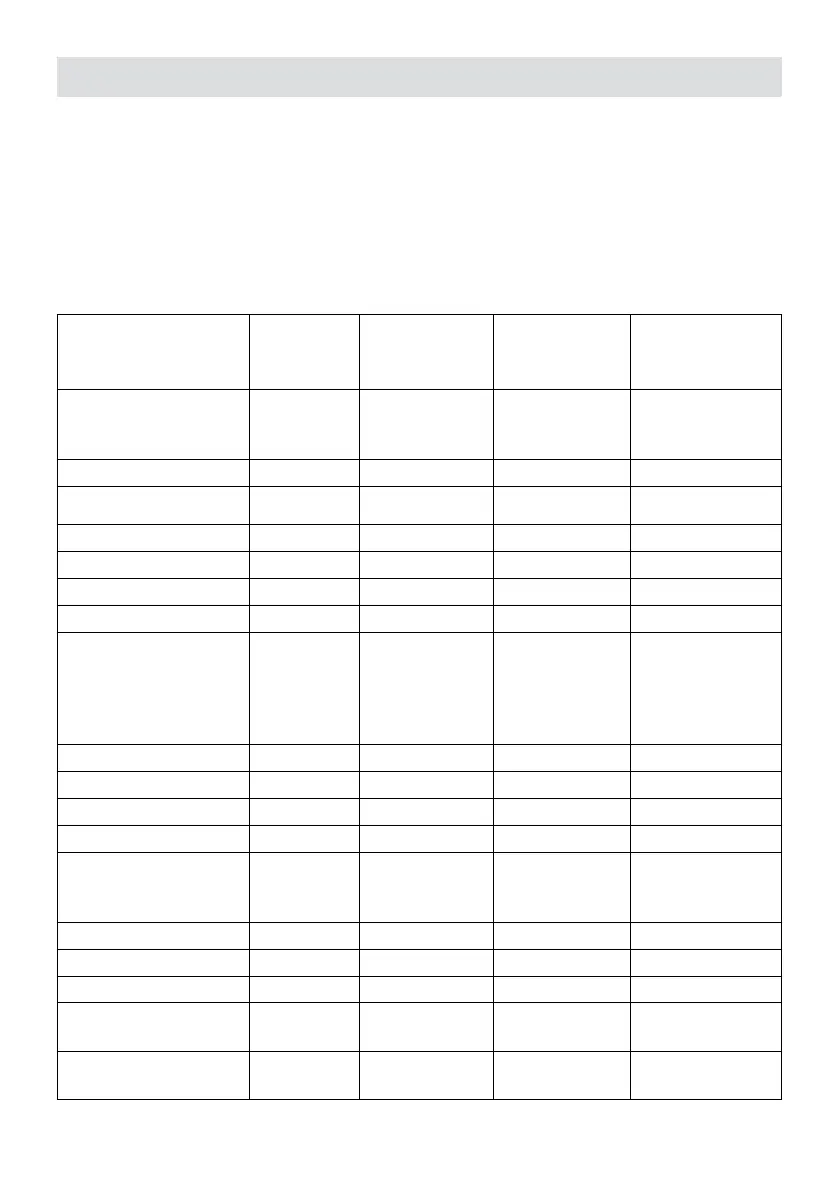 Cooking Program Table (Factory Settings)