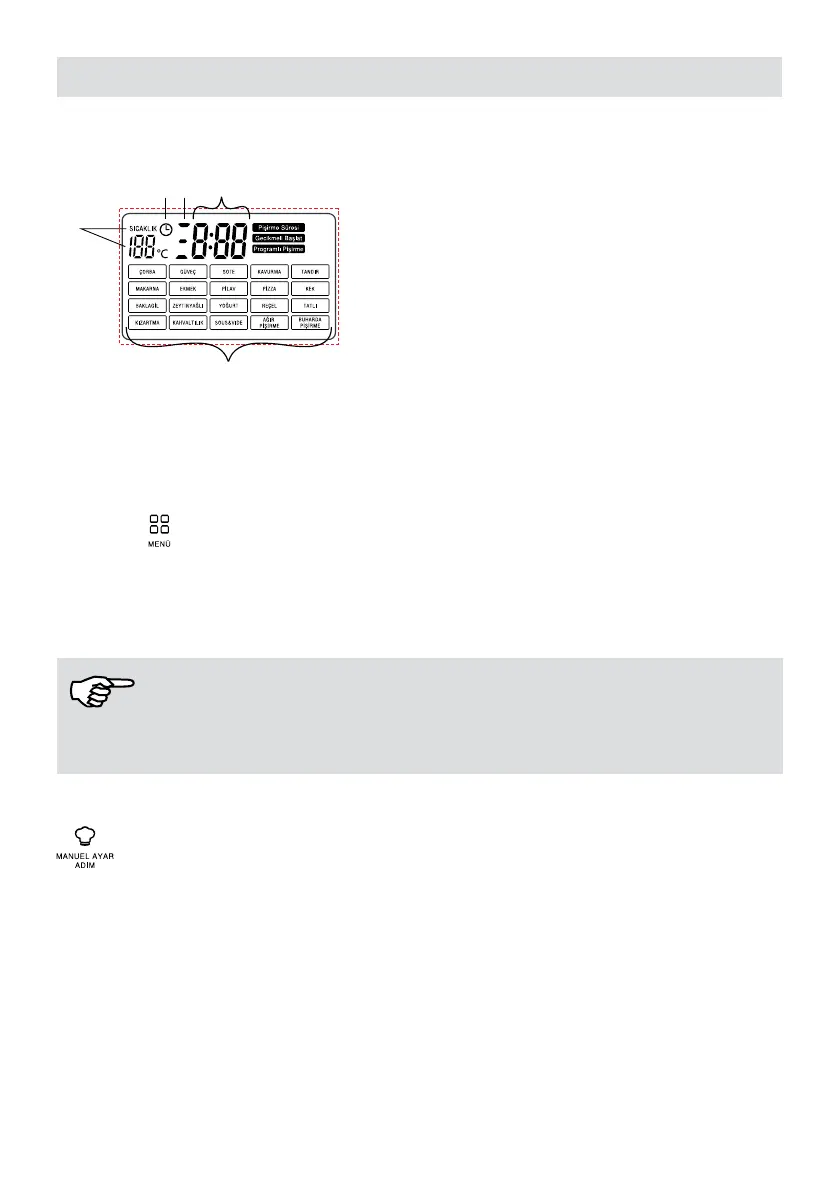 Kullanacağınız yemek programını seçmek için menü tuşuna basınız. Menü tuşuna her