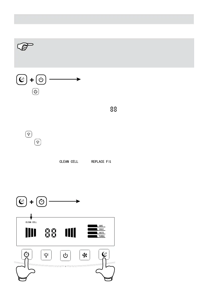 Keep the sleep mode and timer mode buttons pressed for 3 seconds. The CLEAN CELL