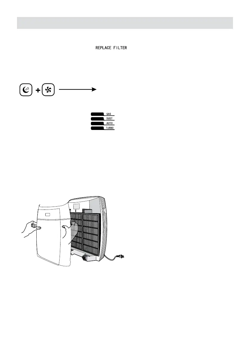 Keep the sleep and mode buttons pressed for 3 seconds. The REPLACE FILTER message