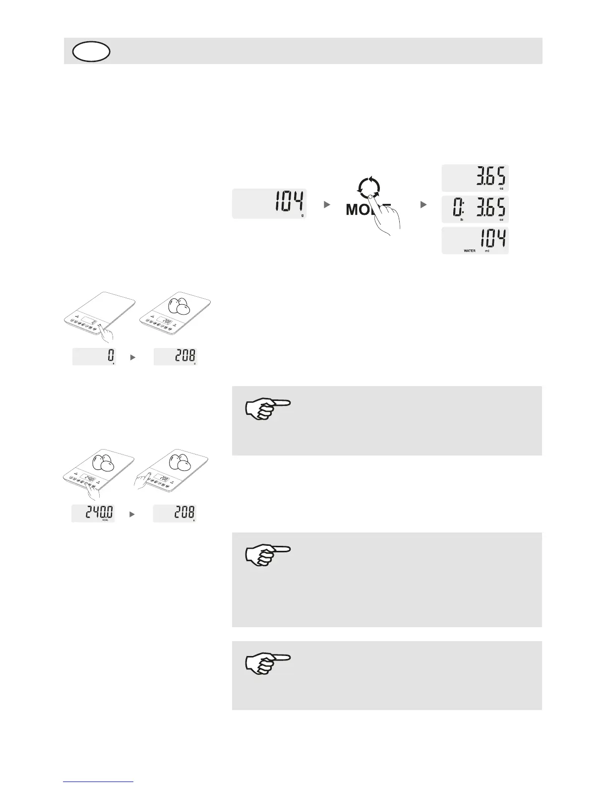 Unit changes (g/oz/lb:oz/water-mi/milk-mi)