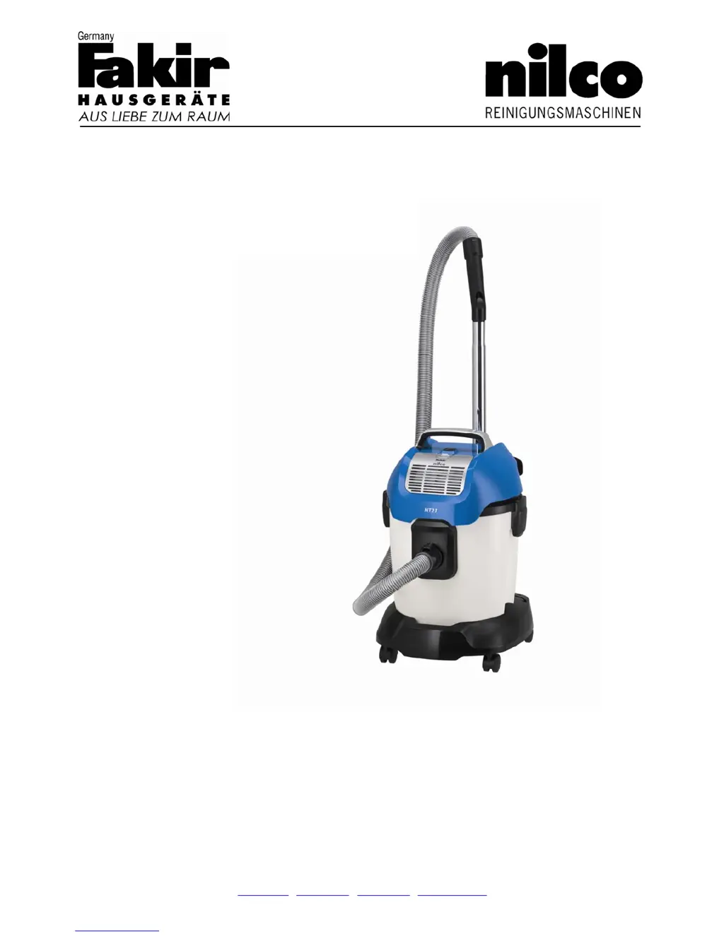If foam or liquid escapes from the ventilation outlets, immediately switch off the Fakir Vacuum Cleaner and withdraw the mains plug. Empty the canister and, if necessary, add some anti-foaming agent. Before switching the appliance on again, carry out a function check on the float valve.