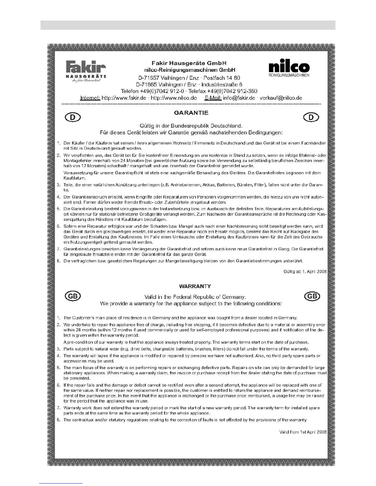 Fakir NT 21 - Operating Instuctions D, GB