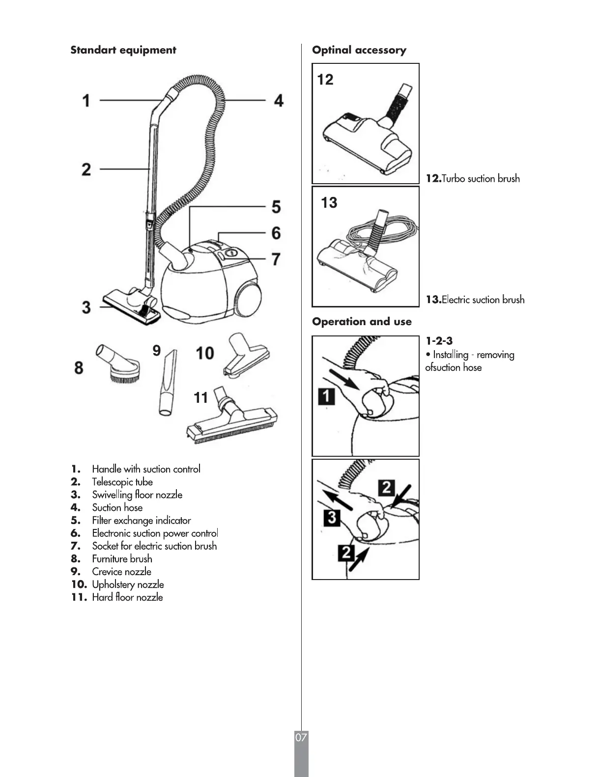 Standart equipment Optinal accessory