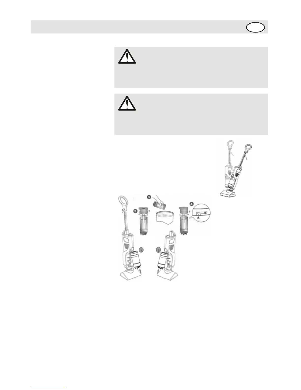 5- Toz tankını cihaza yerleştirmek için önce yukarı tarafını