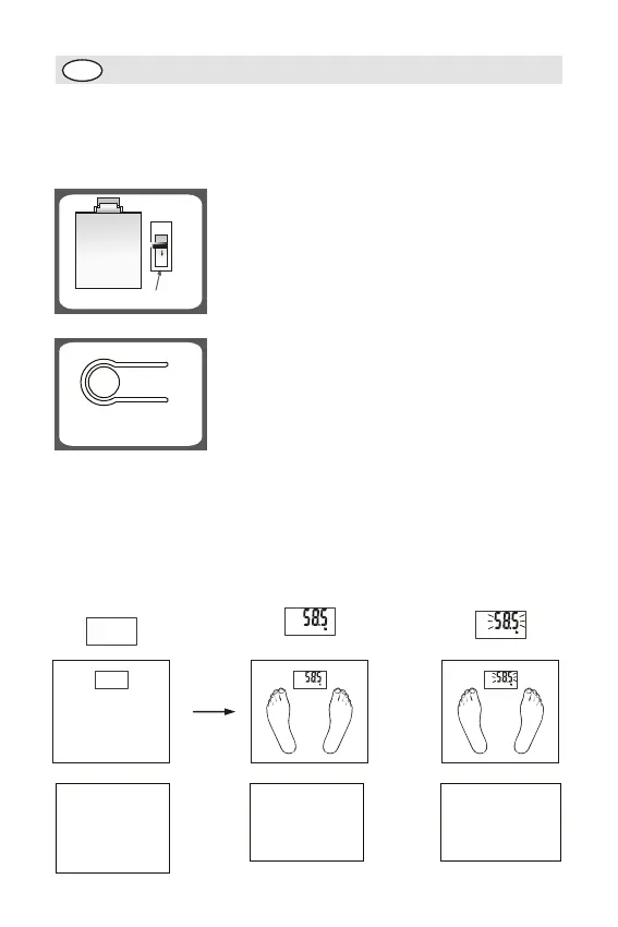 After installing battery, place the scale on flat floor. Keep stand still on scale when