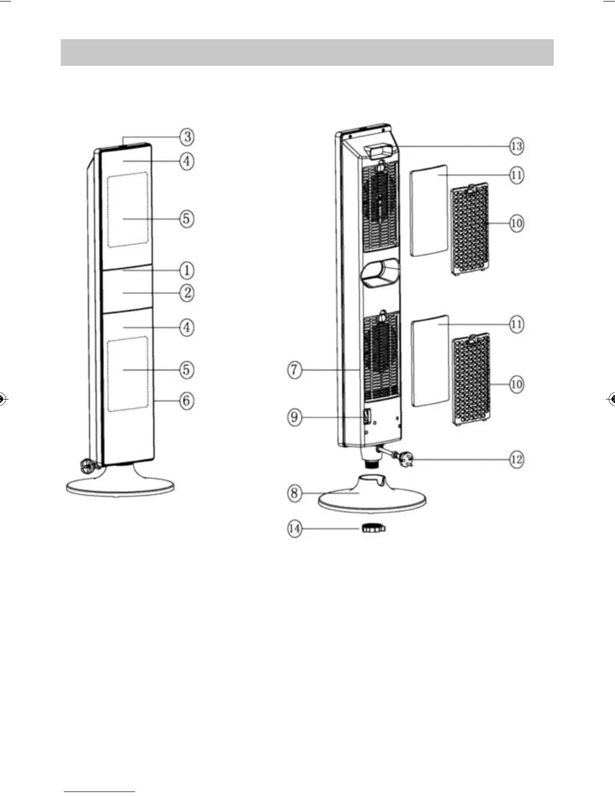 3、Açma/ Kapama düğmesi 10、Filtre Kapağı