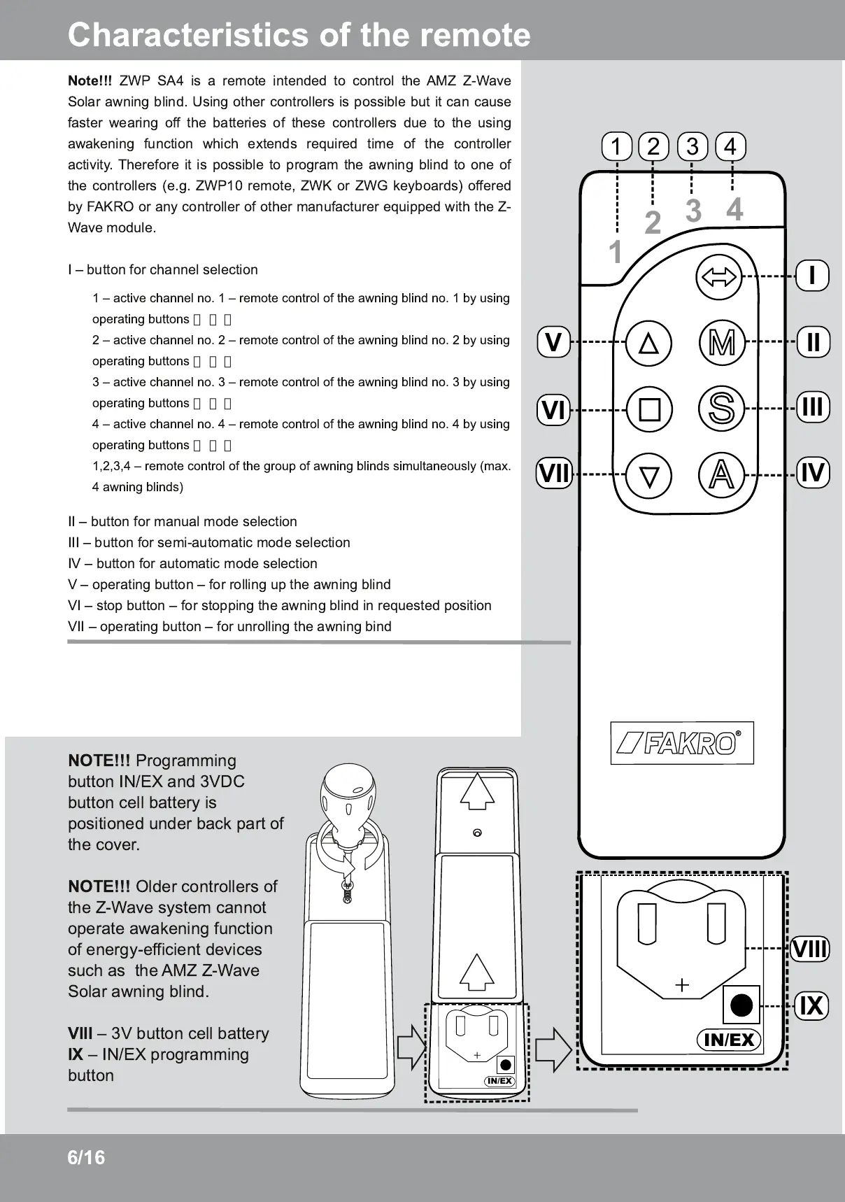 ZWP SA4 is a remote intended to control the AMZ Z-Wave