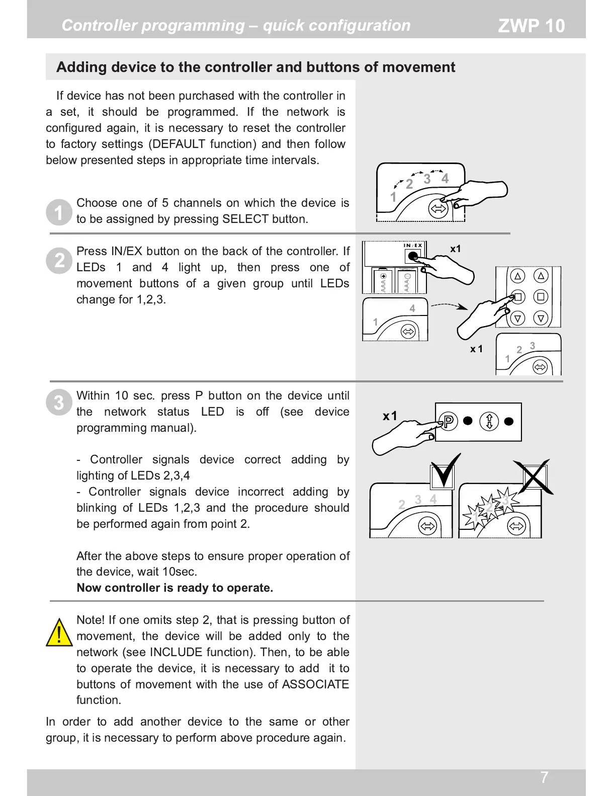 - Controller signals device correct adding by