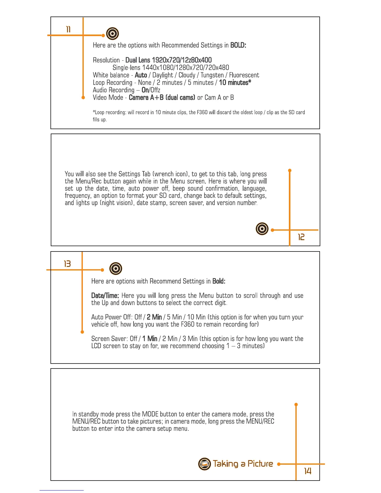 Falcon Zero F360 - Recommended Settings; Taking a Picture