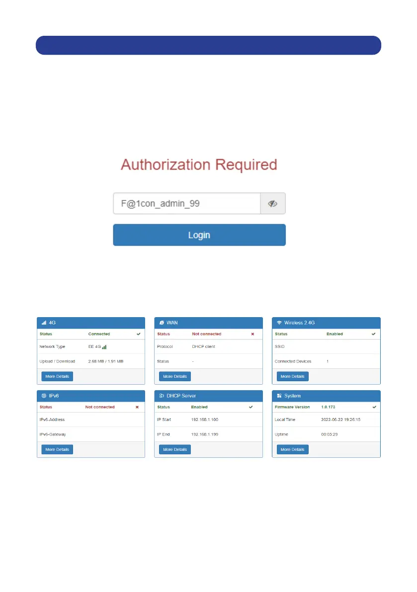 Display 4G, WAN, wireless 2.4G, DHCP server and system’s information