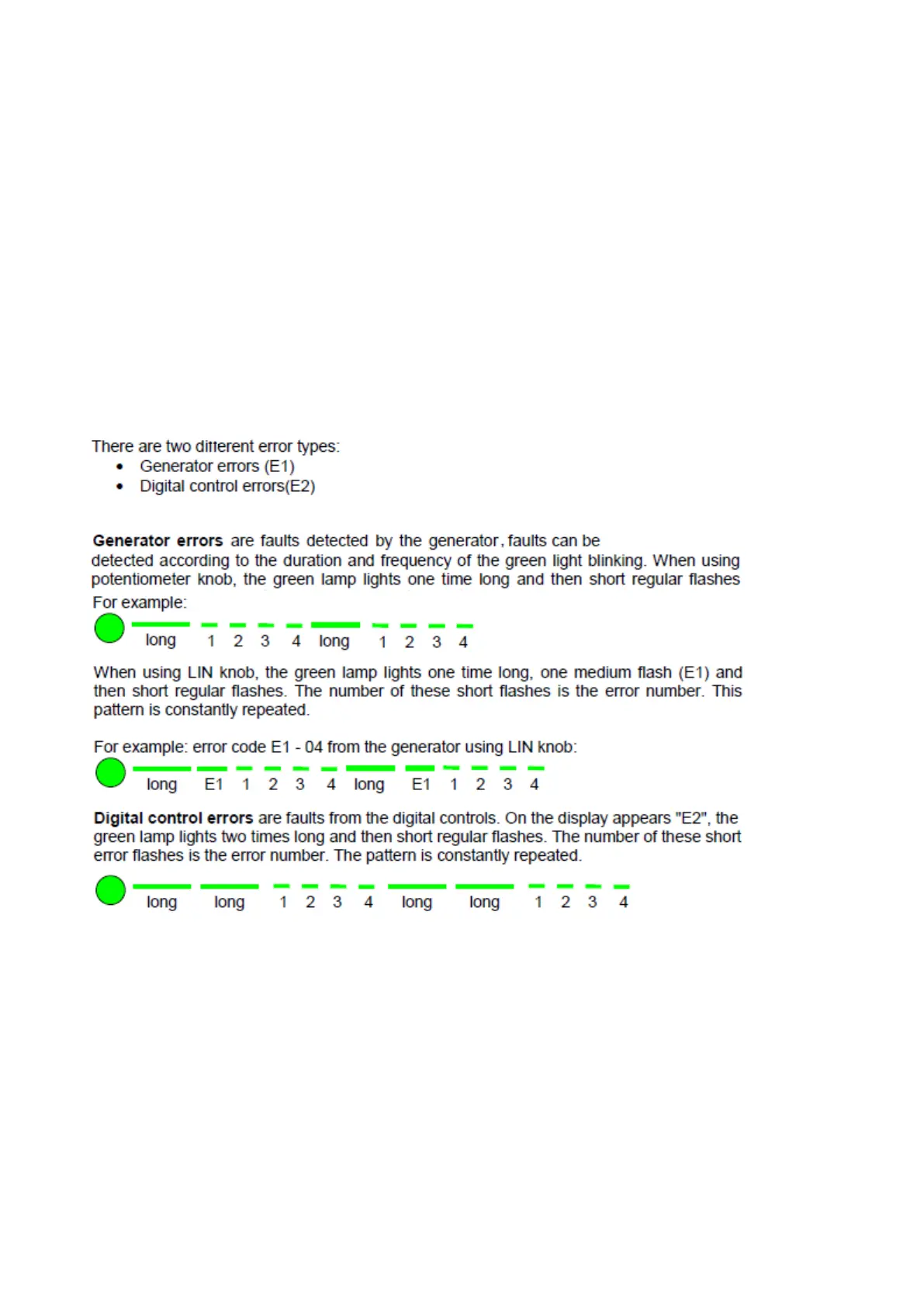 If an error occurs within the unit, the control panel LEDs will flash to indicate an error code.