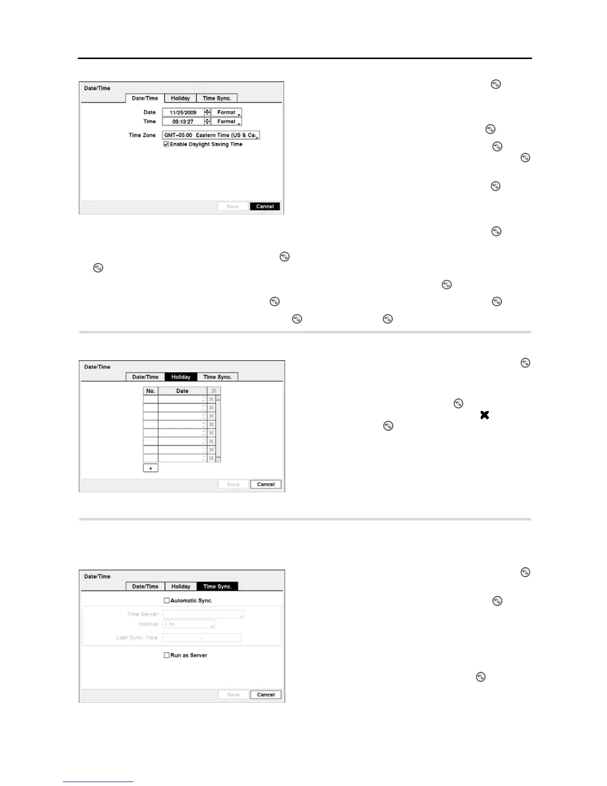 between the DVR and standard time servers that are available in most time zones and countries, or between the DVR