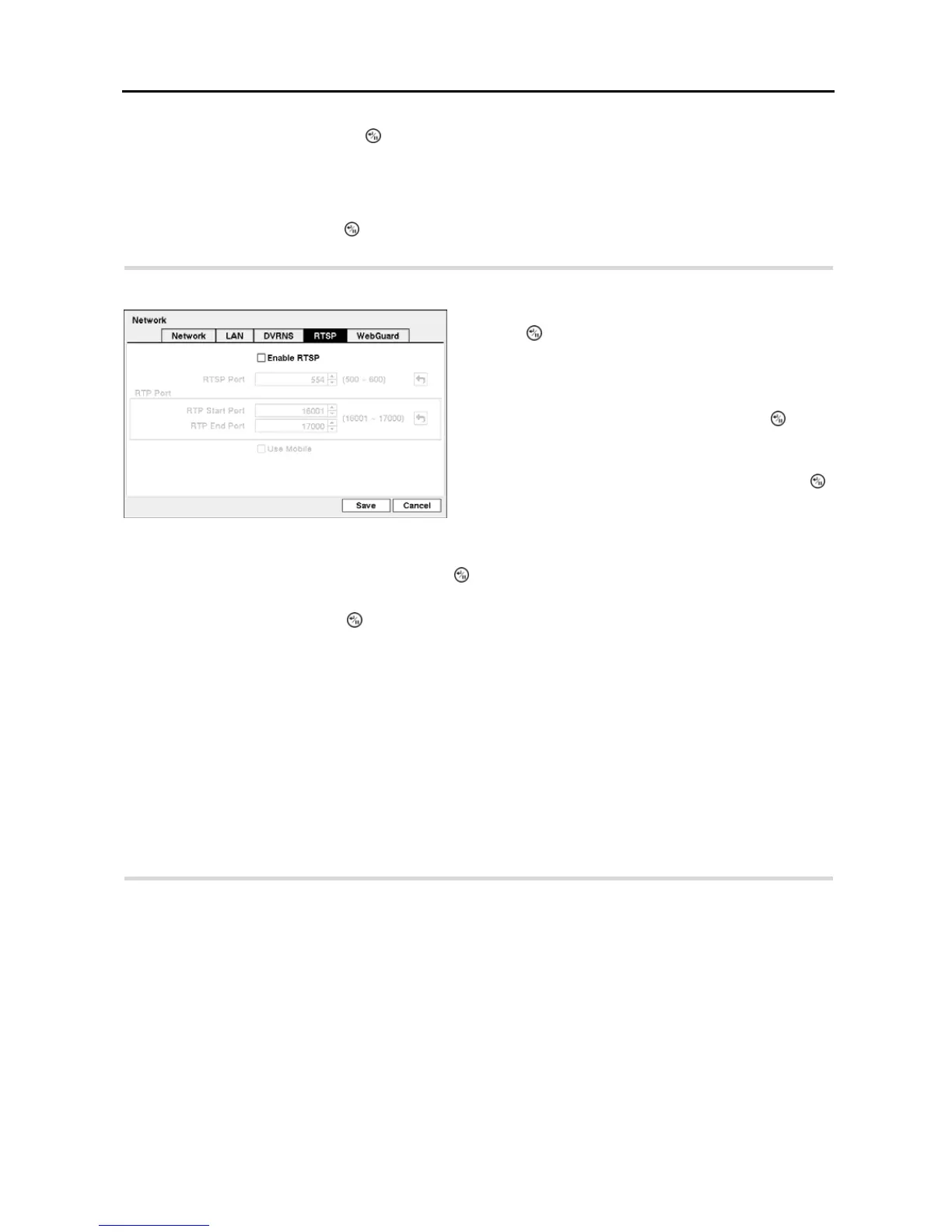 Highlight the RTSP tab, and the RTSP setup screen displays.