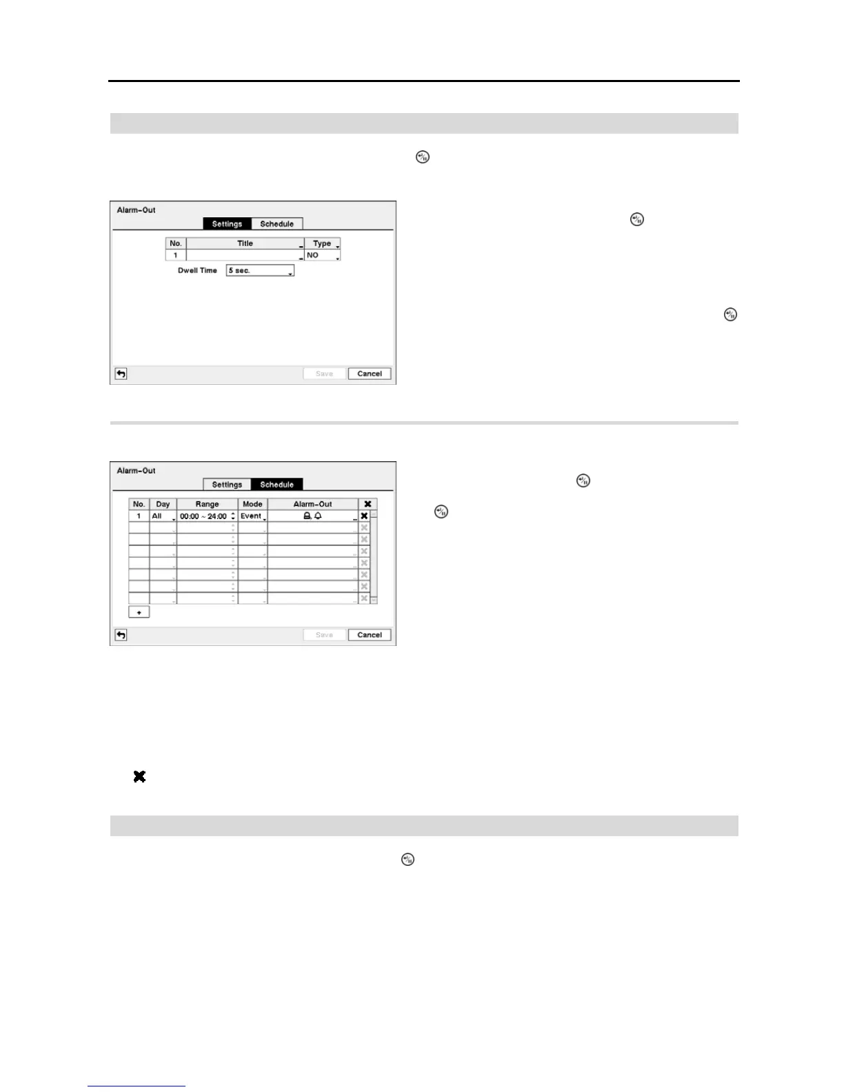 The Alarm-Out box allows you to select between Alarm Output and Beep (DVR’s internal buzzer).