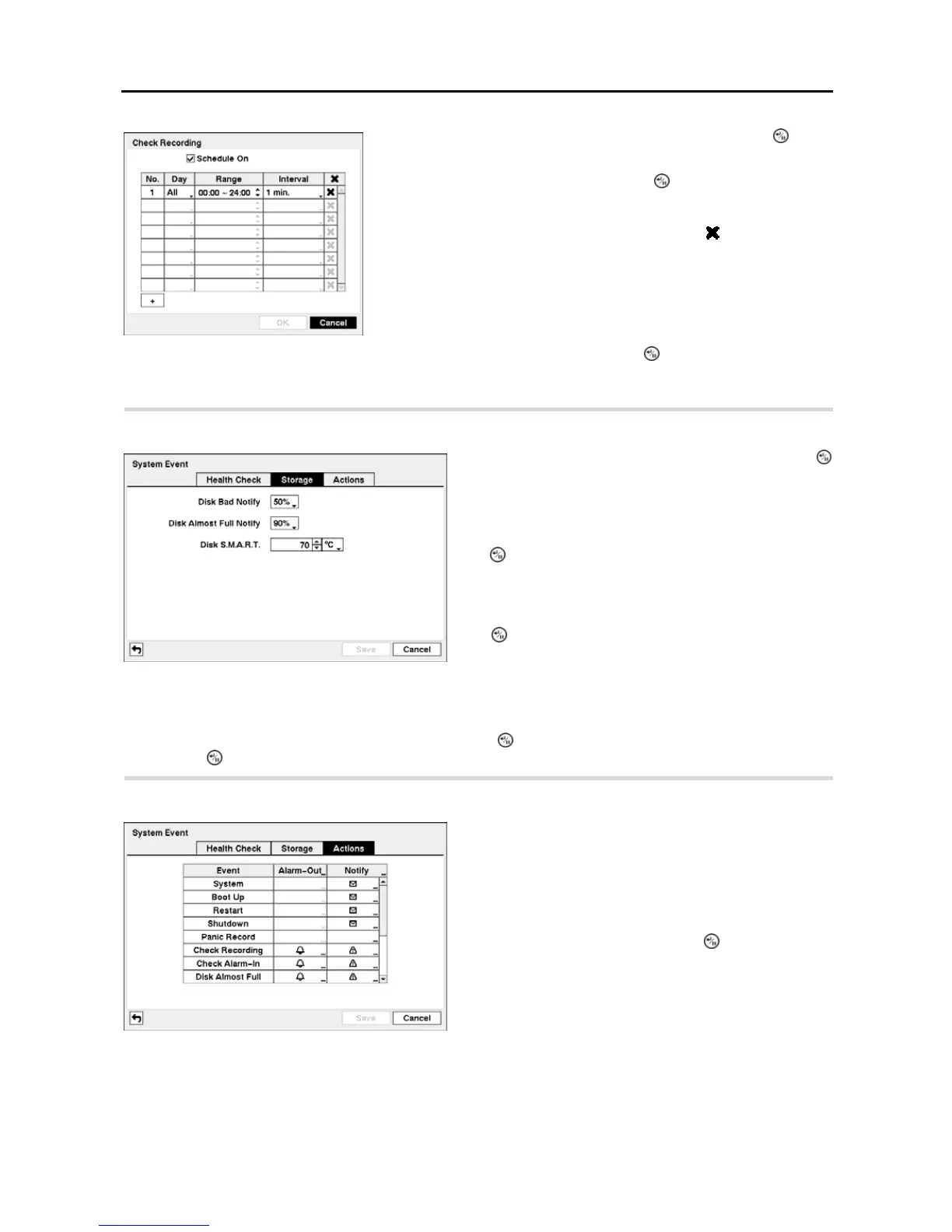 Recording, Check Alarm-In, Disk Almost Full, Disk Full,