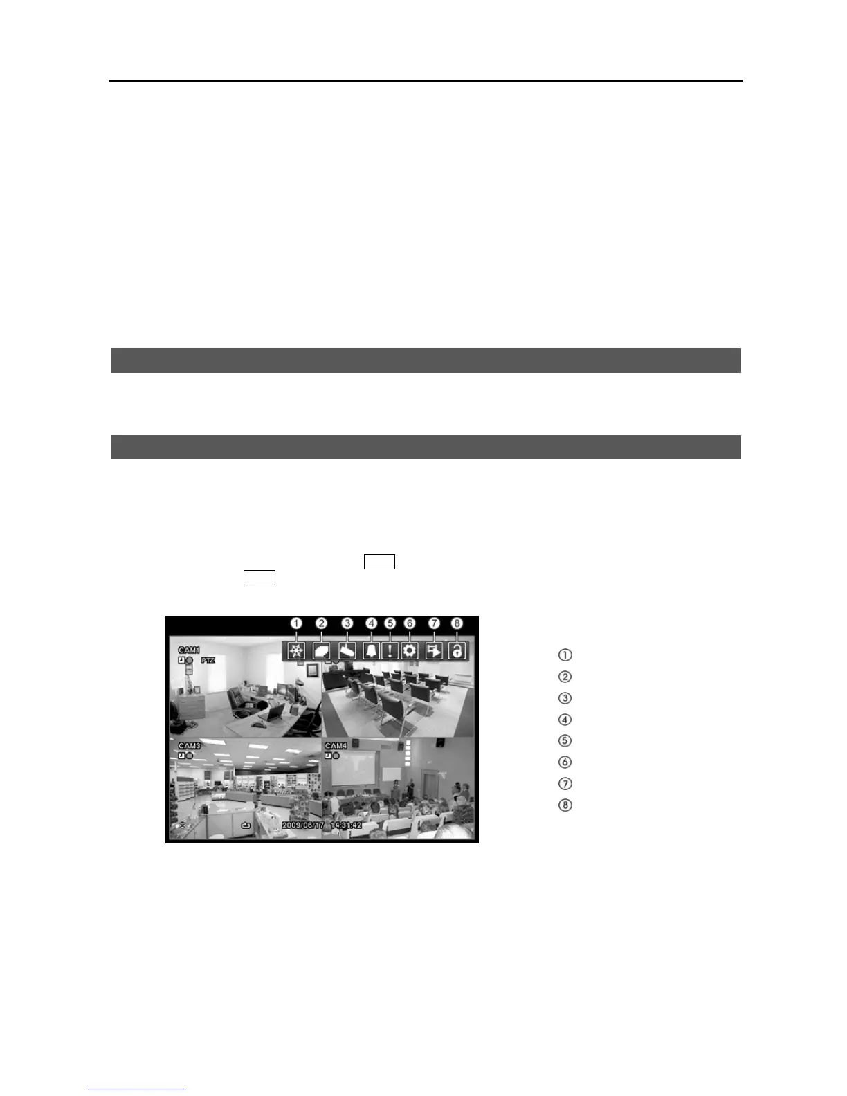As soon as the DVR completes its initialization process, it will begin showing live video on the attached monitor and