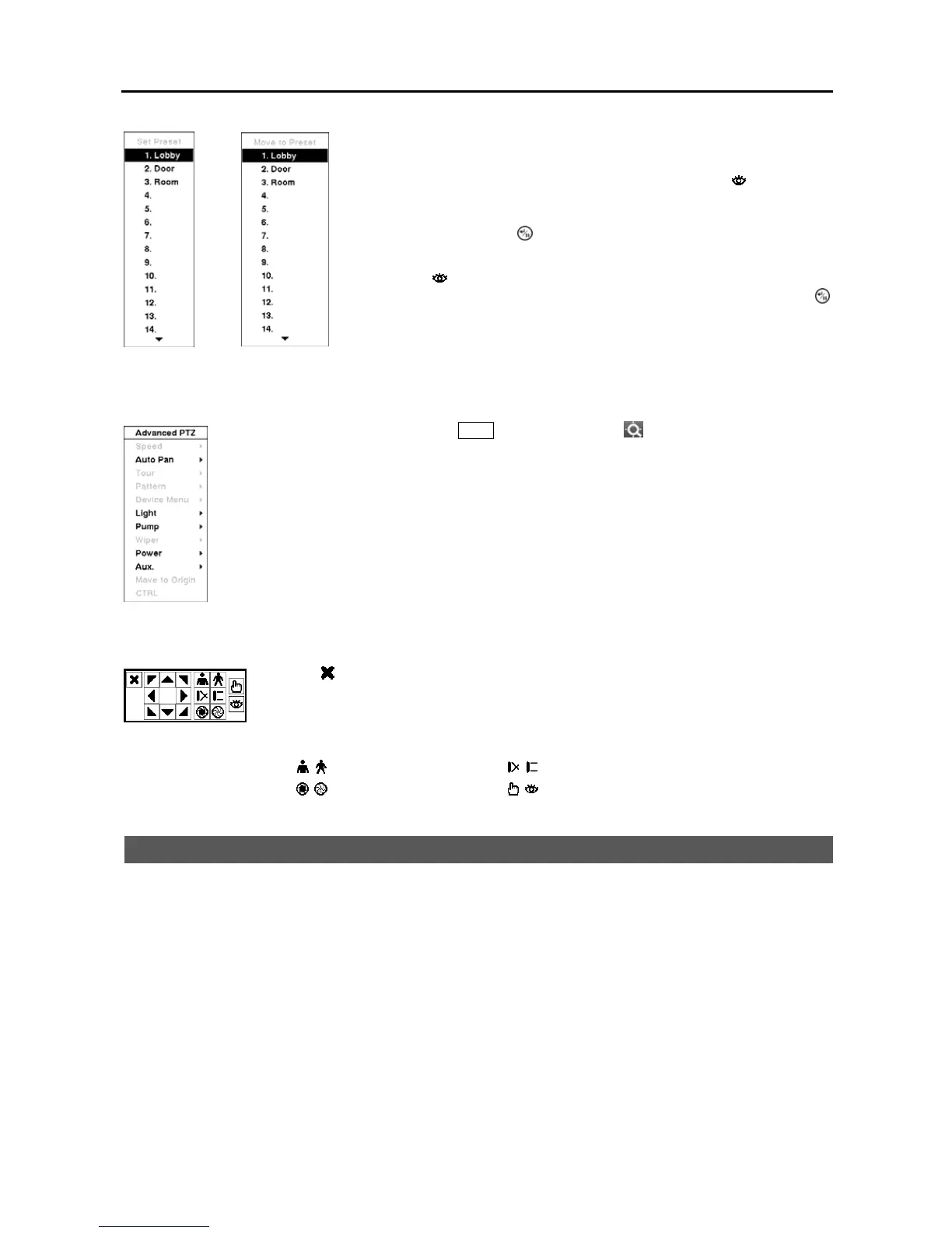 displaying at the top of the screen displays the Advanced PTZ menu.