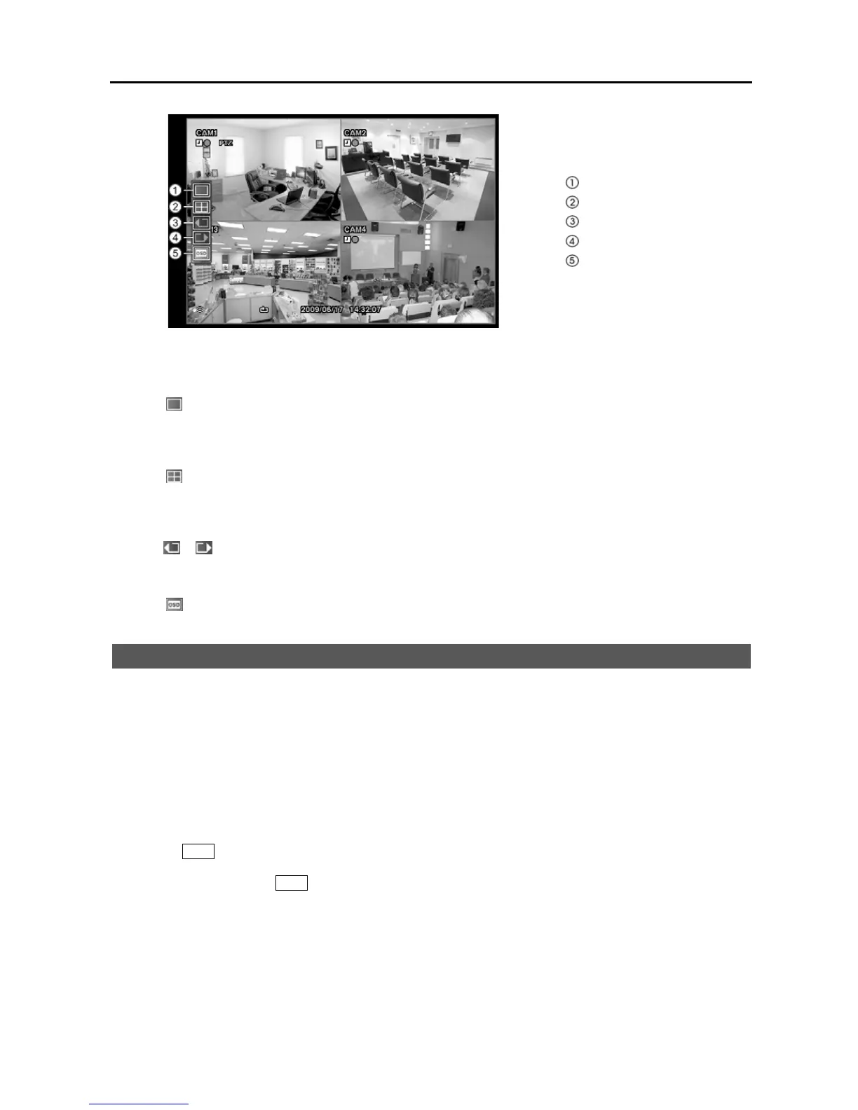 camera full screen. It is the same as pressing the individual camera buttons on the front panel.