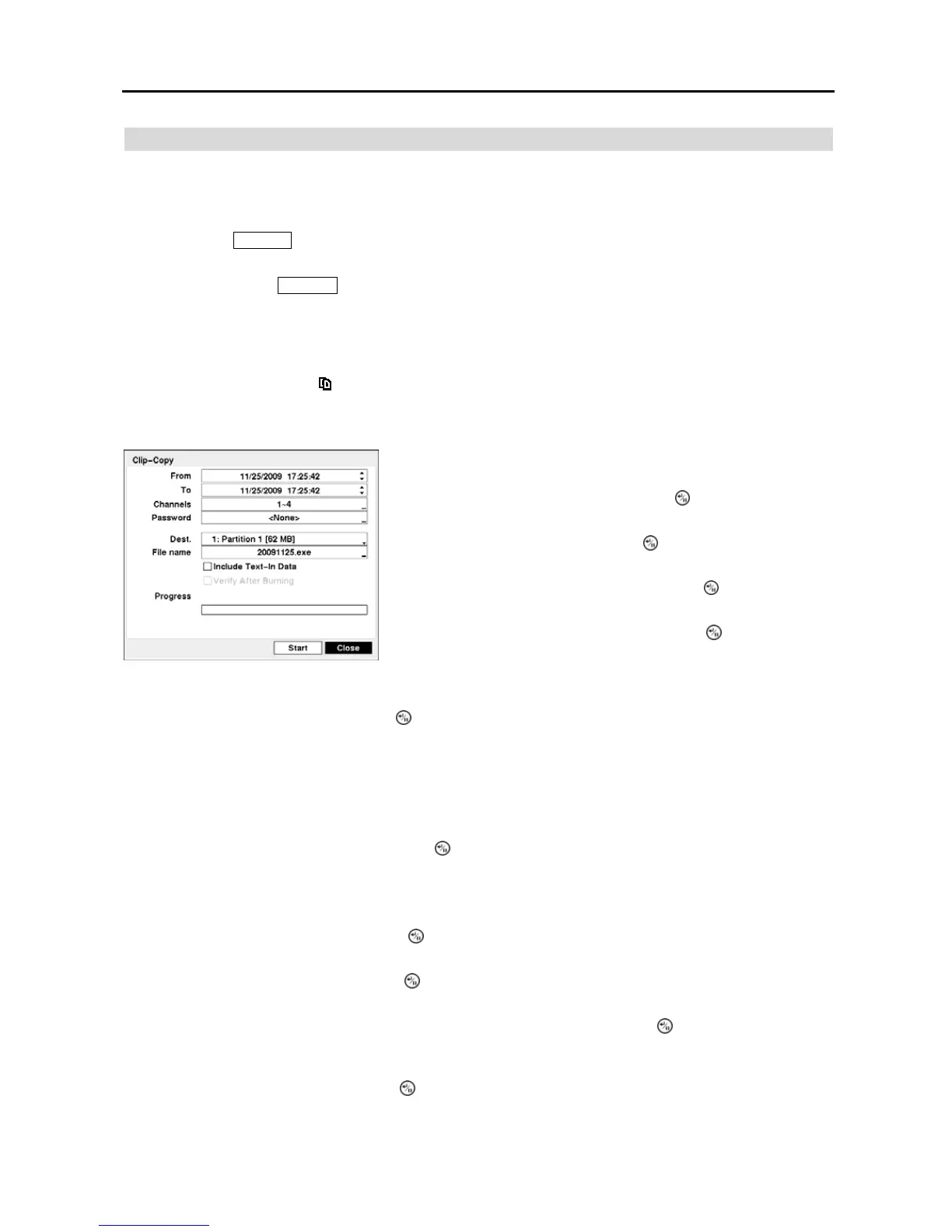 Pressing and holding the Clip Copy button for more than three seconds while in the Search mode or Live Monitoring