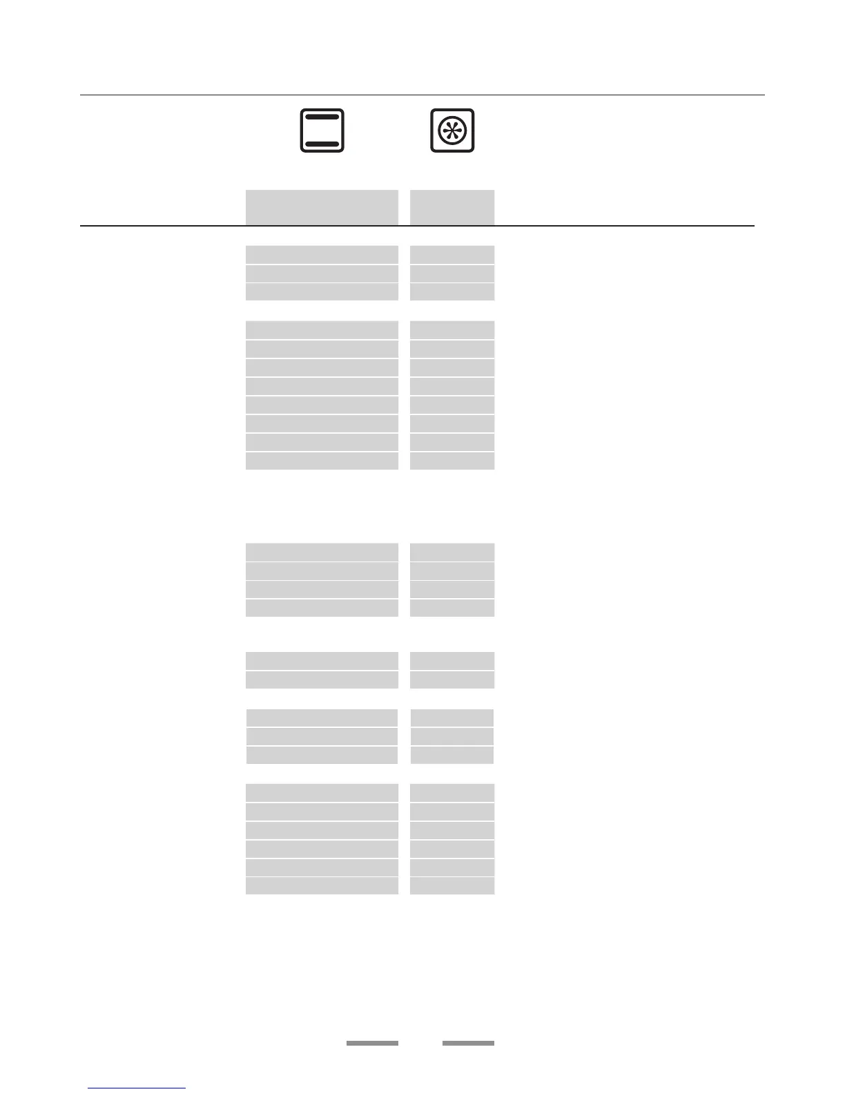 Oven Cooking chart - Conventional and Fan Ovens