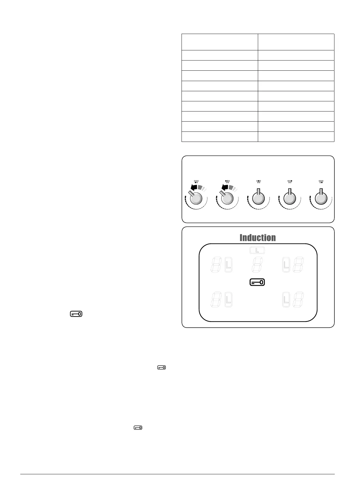 To lock the hob, simultaneously turn the two left-hand