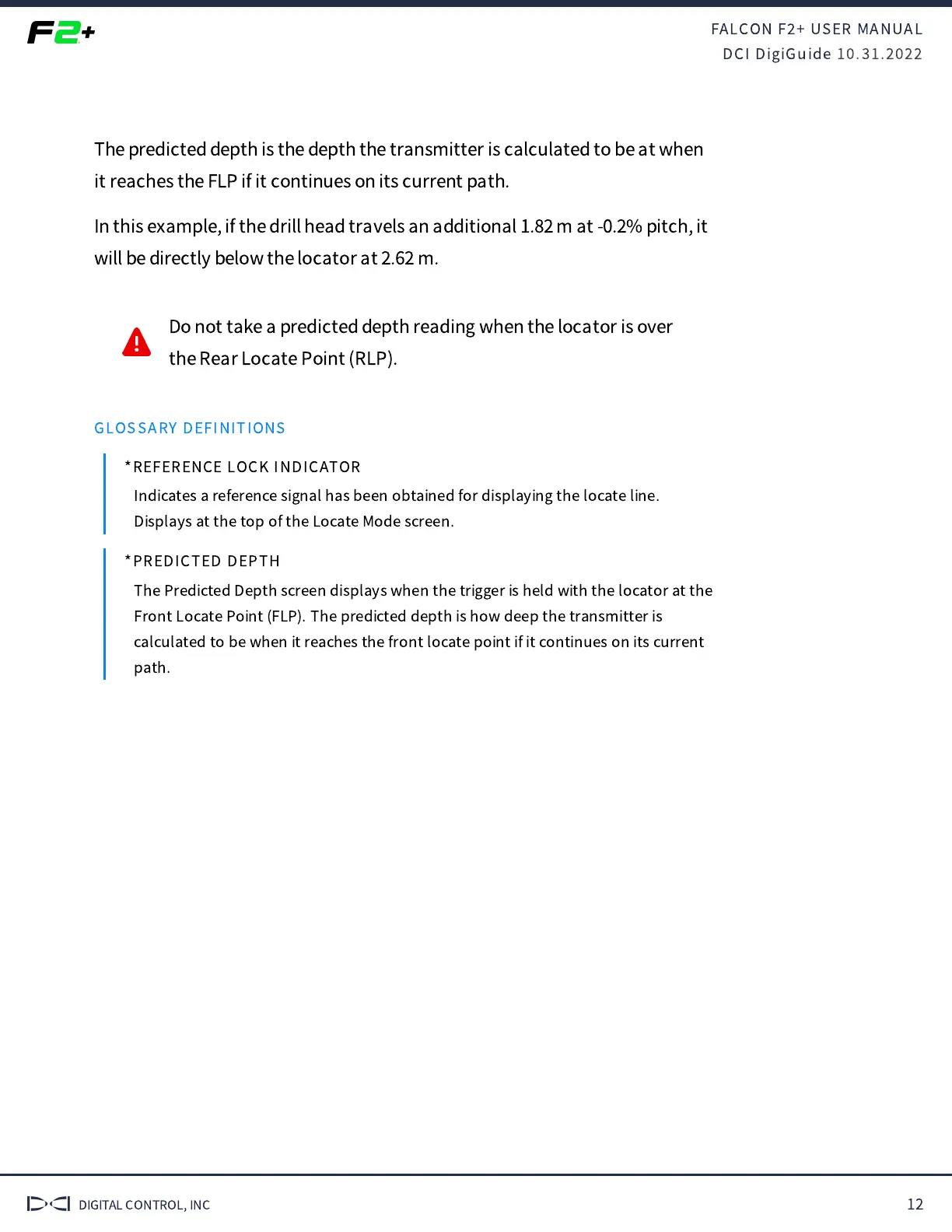 Front Locate Point (FLP). The predicted depth is how deep the transmitter is