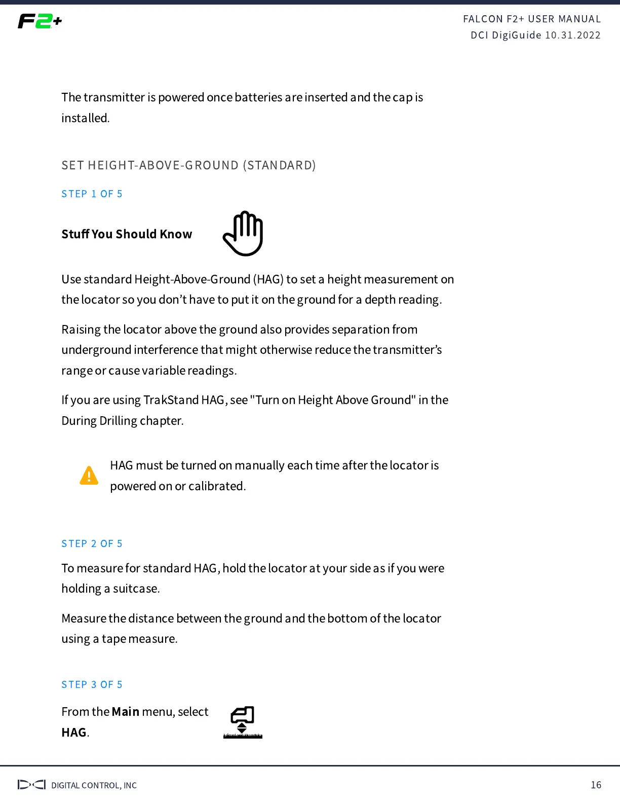 HAG must be turned on manually each time after the locator is