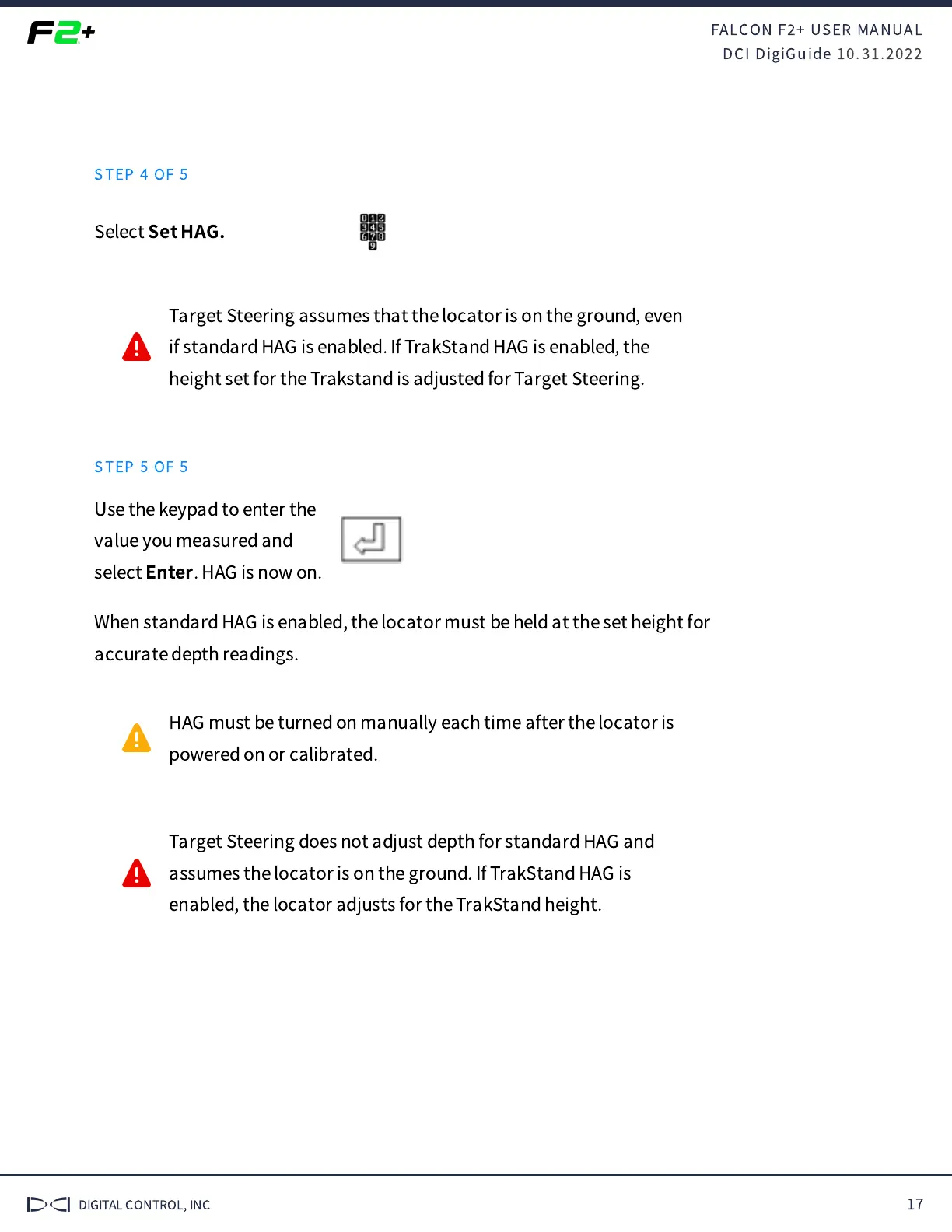 When standard HAG is enabled, the locator must be held at the set height for