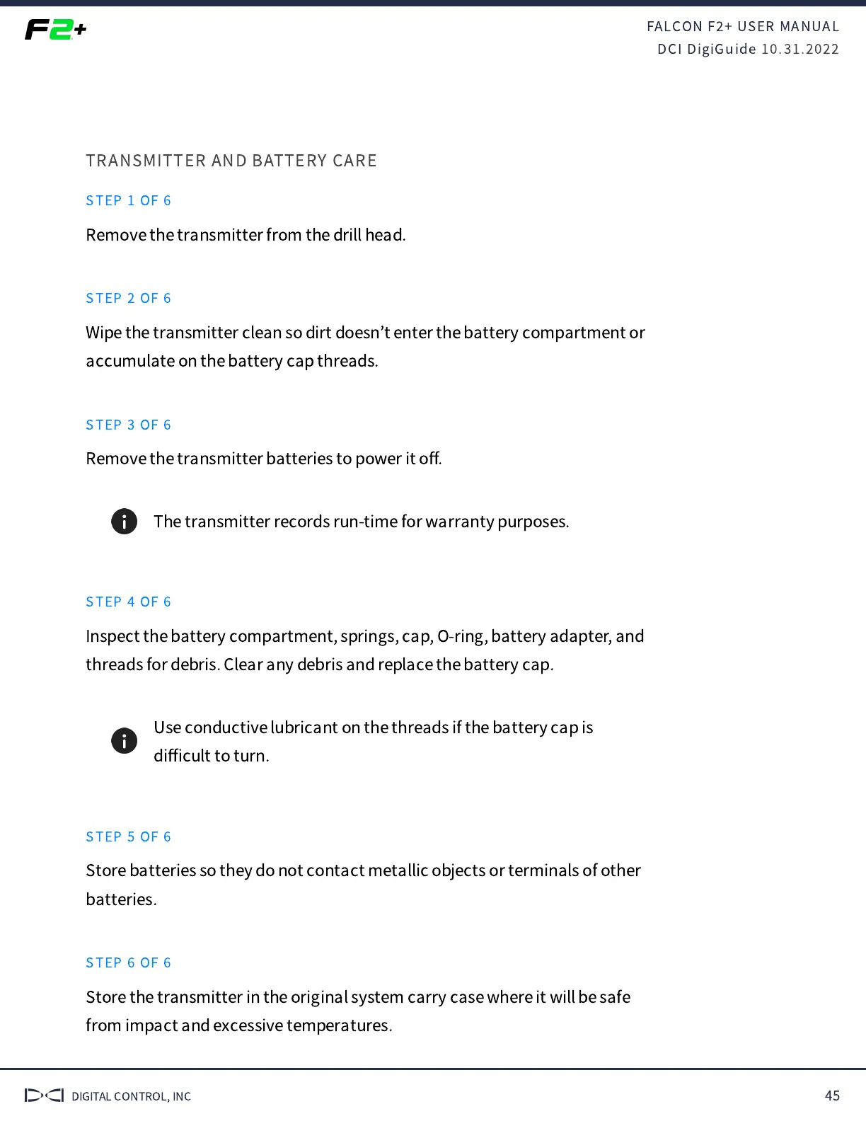 Inspect the battery compartment, springs, cap, O-ring, battery adapter, and