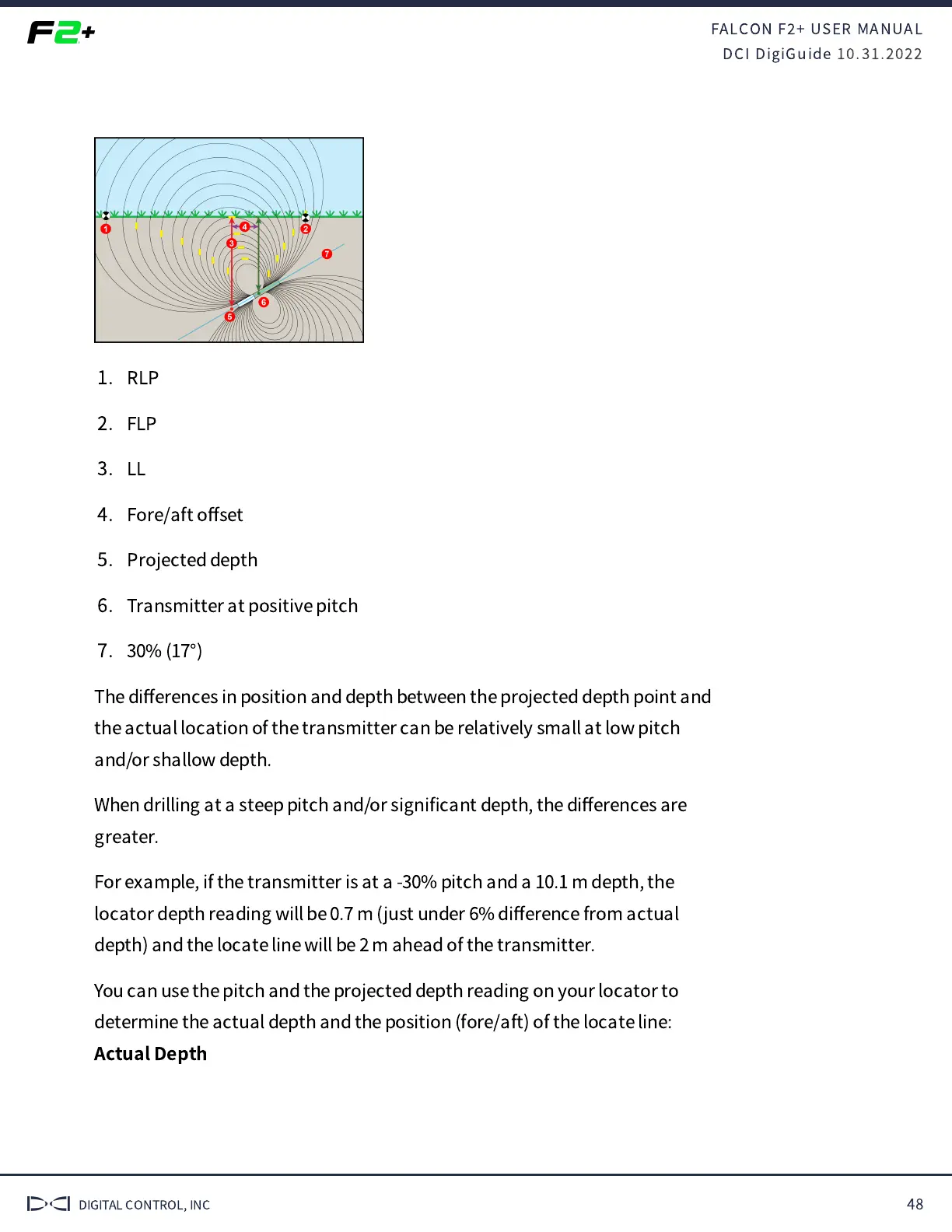 depth) and the locate line will be 2 m ahead of the transmitter.