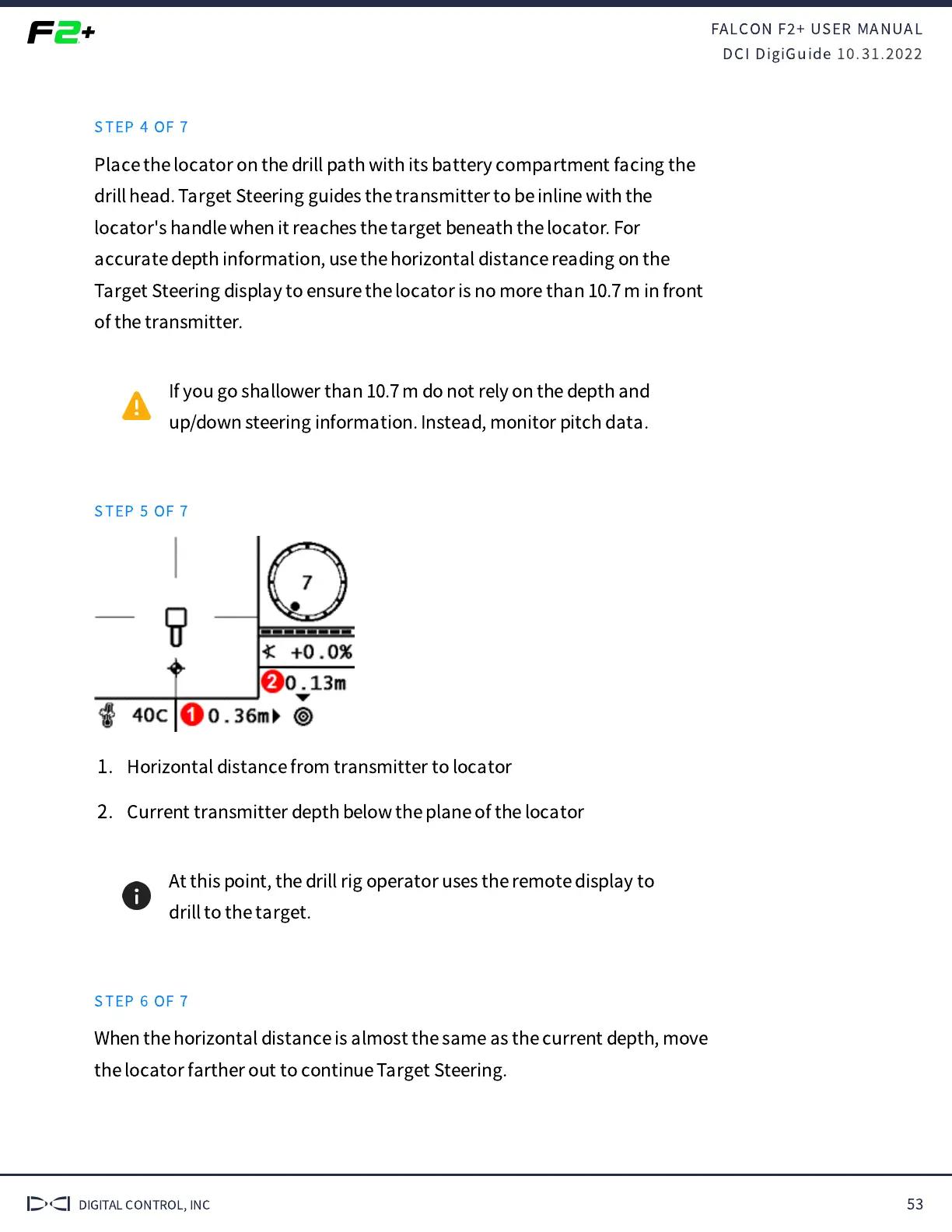 Target Steering display to ensure the locator is no more than 10.7 m in front
