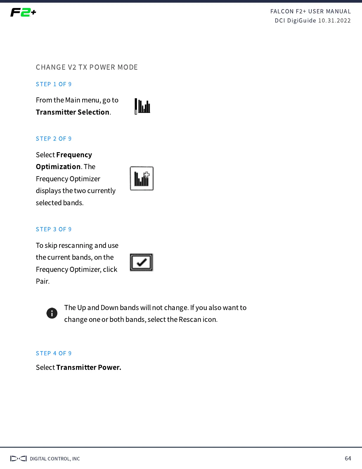 change one or both bands, select the Rescan icon.