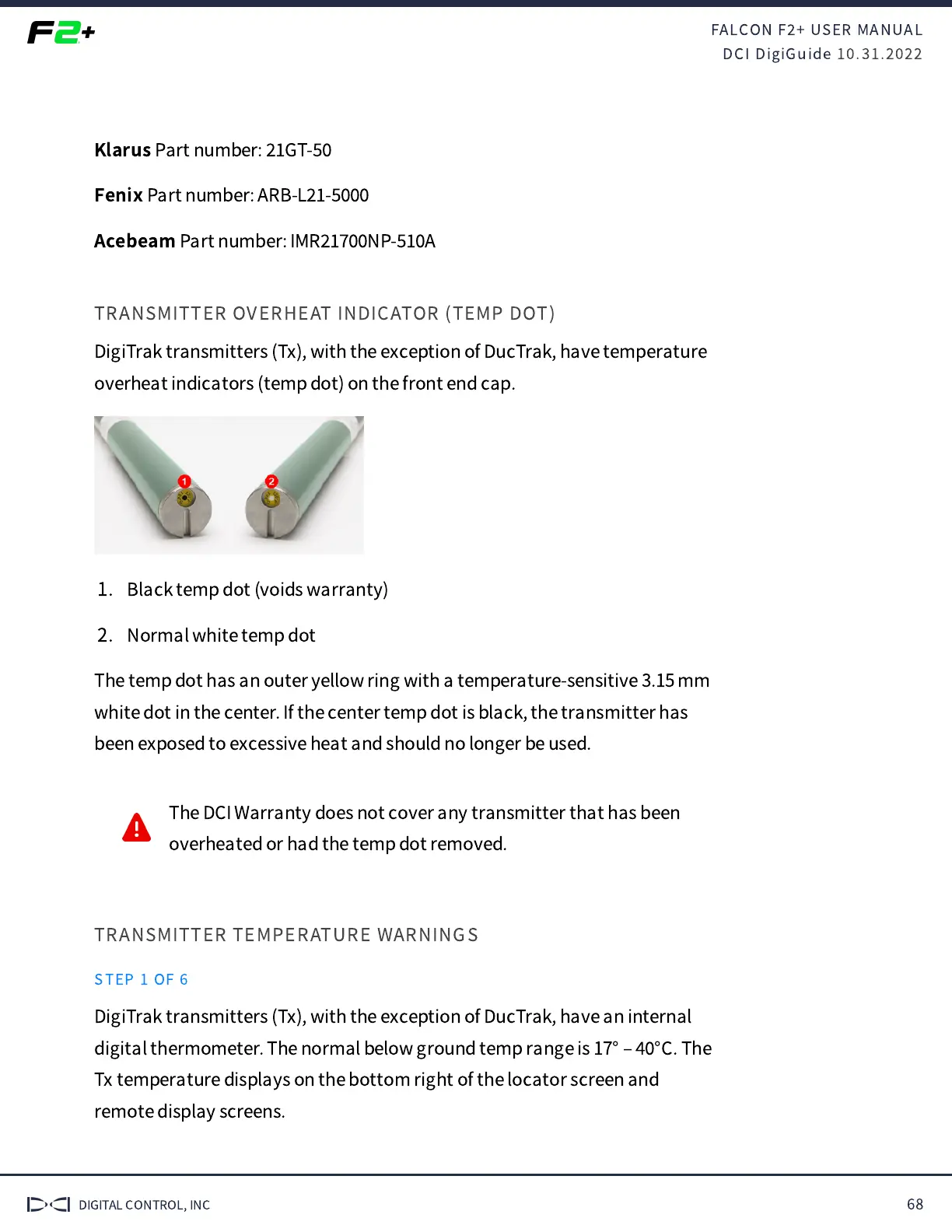 DigiTrak transmitters (Tx), with the exception of DucTrak, have temperature