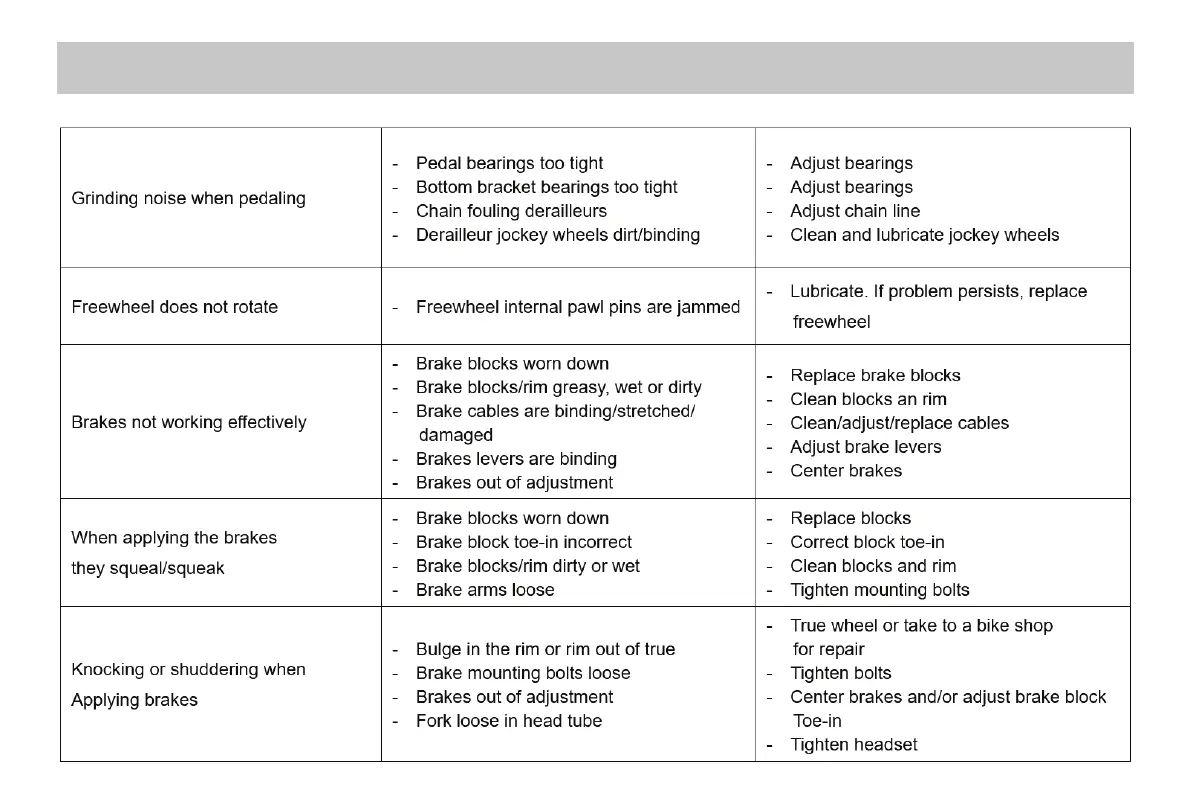 Falcon FLO - Pedaling Grinding Noises; Freewheel Rotation Issues; Brake Ineffectiveness; Brake Squealing Resolution