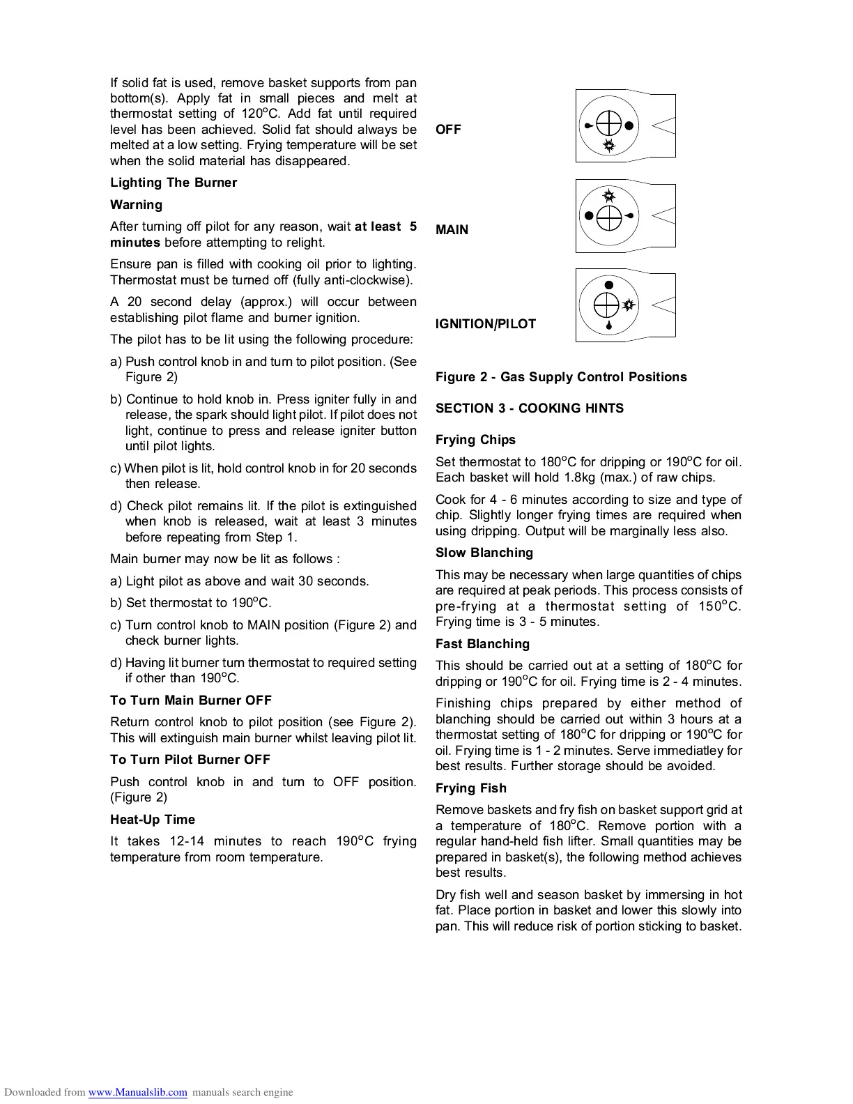 C for oil. Frying time is 2 - 4 minutes.