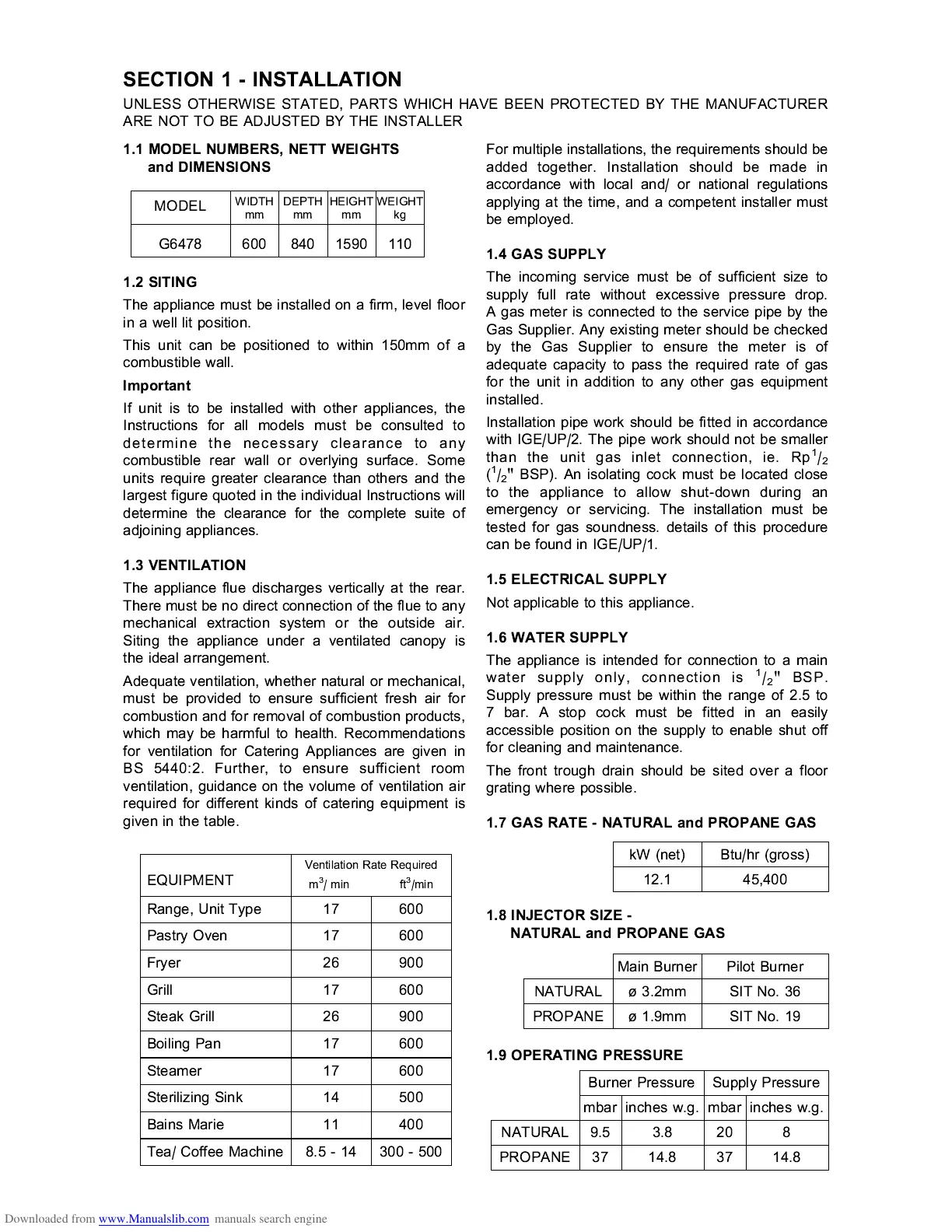 1.7 GAS RATE - NATURAL and PROPANE GAS