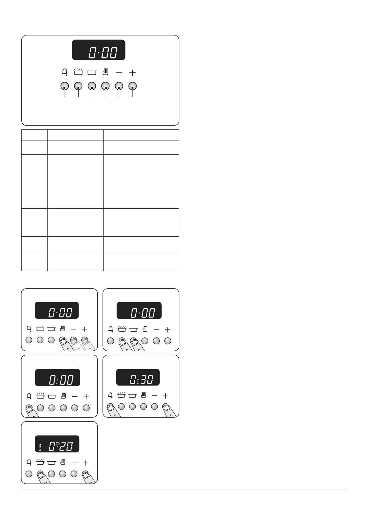 A – Minute minder, B – ‘Cook’ time, C – ‘Stop’ time, D – Manual,