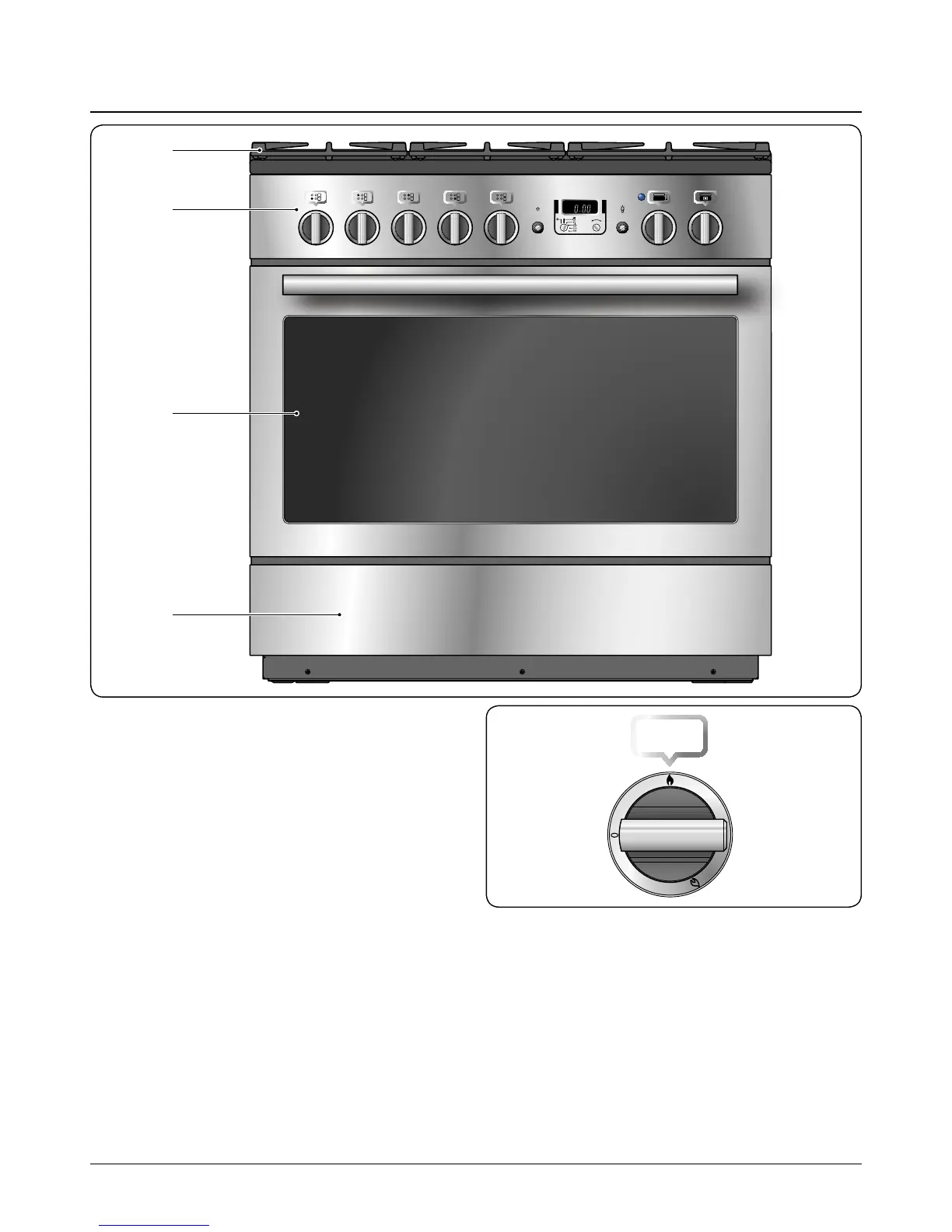 The dual fuel single cavity cooker (Fig.2-1) has the following