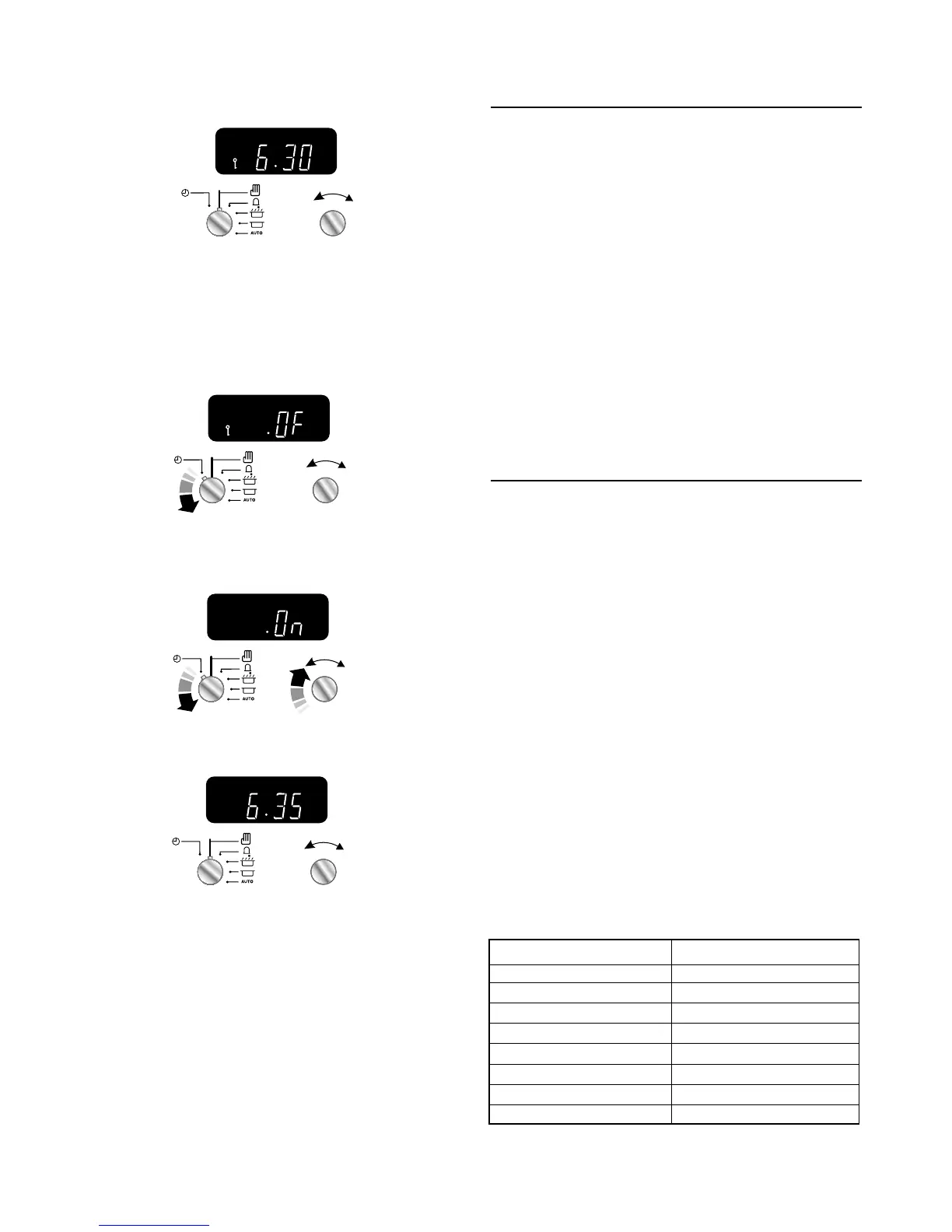 goes out on the display and ‘On’ shows. Let go of the knobs.