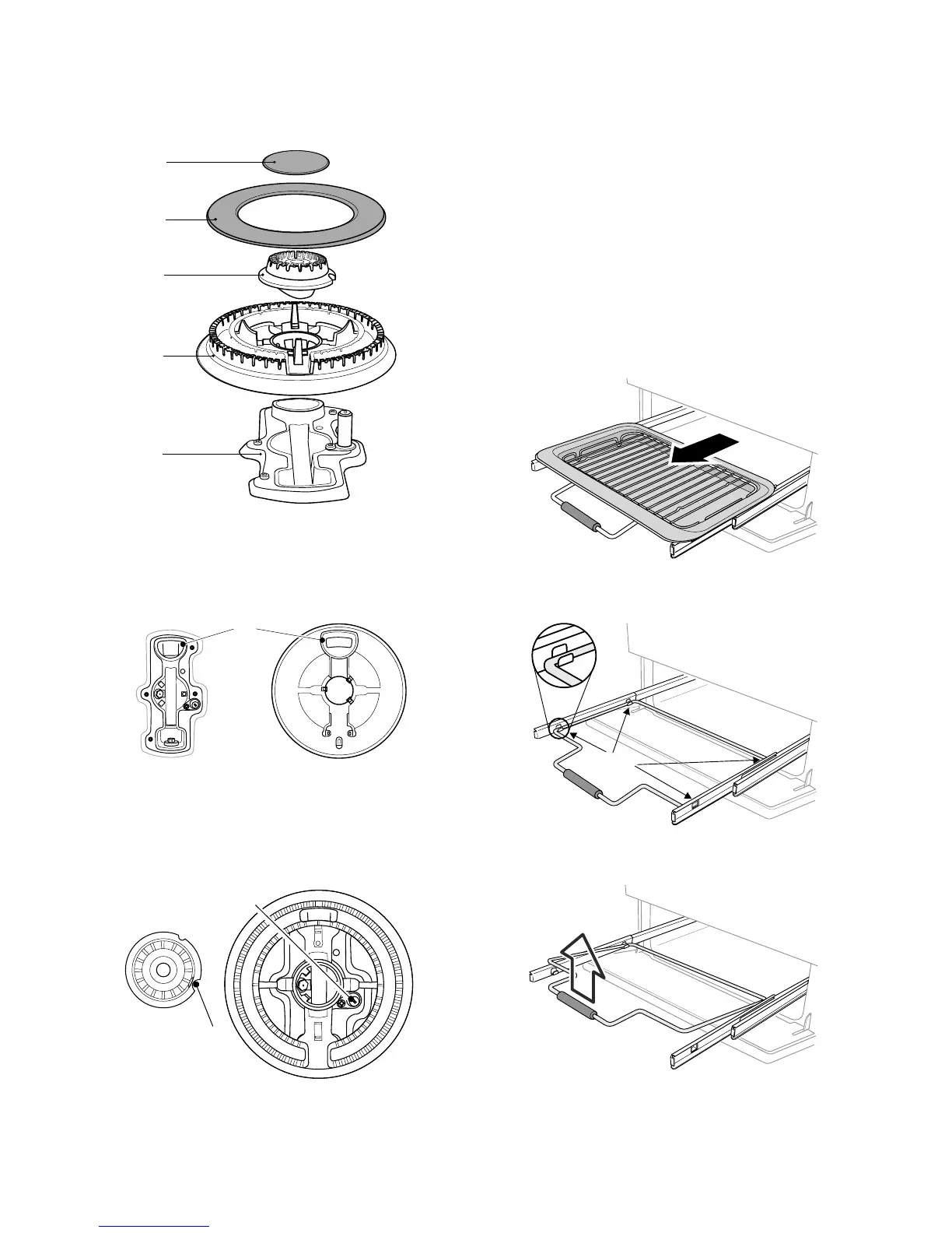 A - Inner burner cap, B - Outer burner cap, C - Inner burner head,