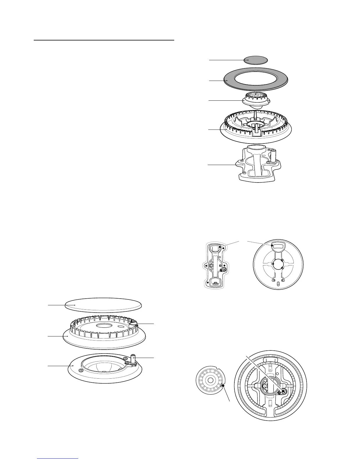 A - Chapeau de brûleur interne, B - Chapeau de brûleur externe,