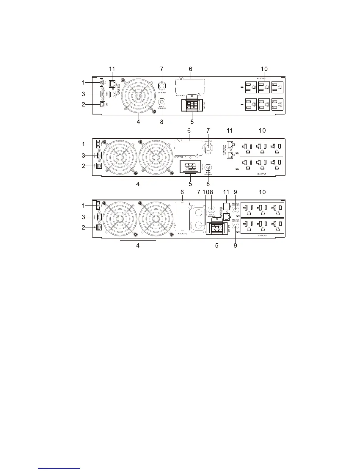 9. Output circuit breaker for 2 outlets