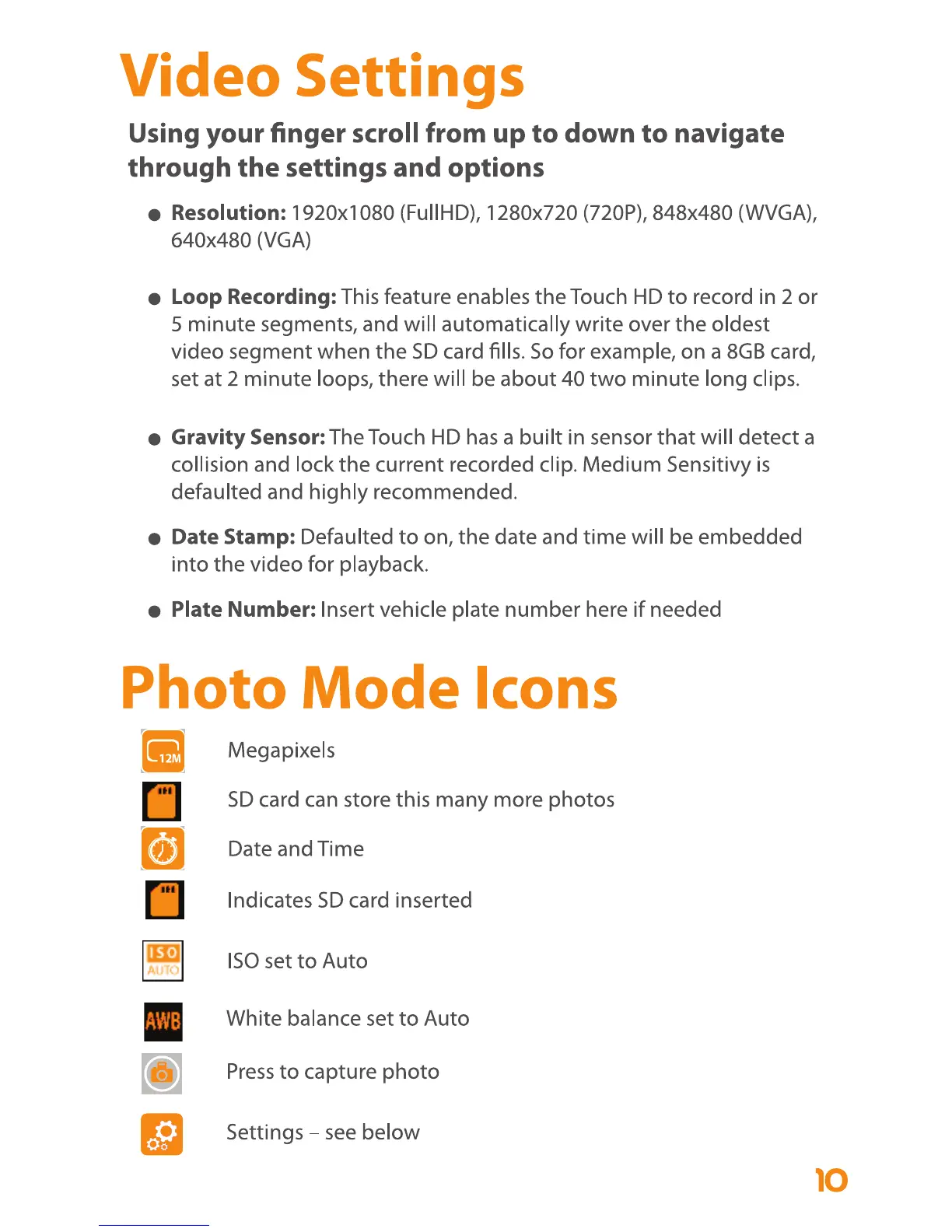Falcon ZERO - Video Settings; Photo Mode Icons