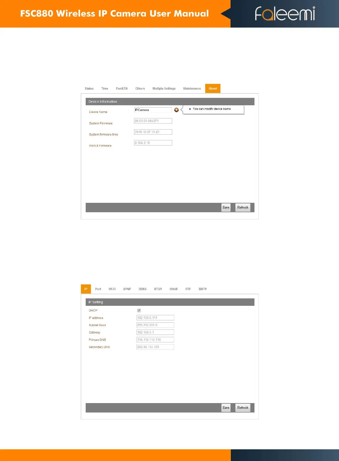 You can modify device name and check system firmware version, system firmware time and Web Ul firmware