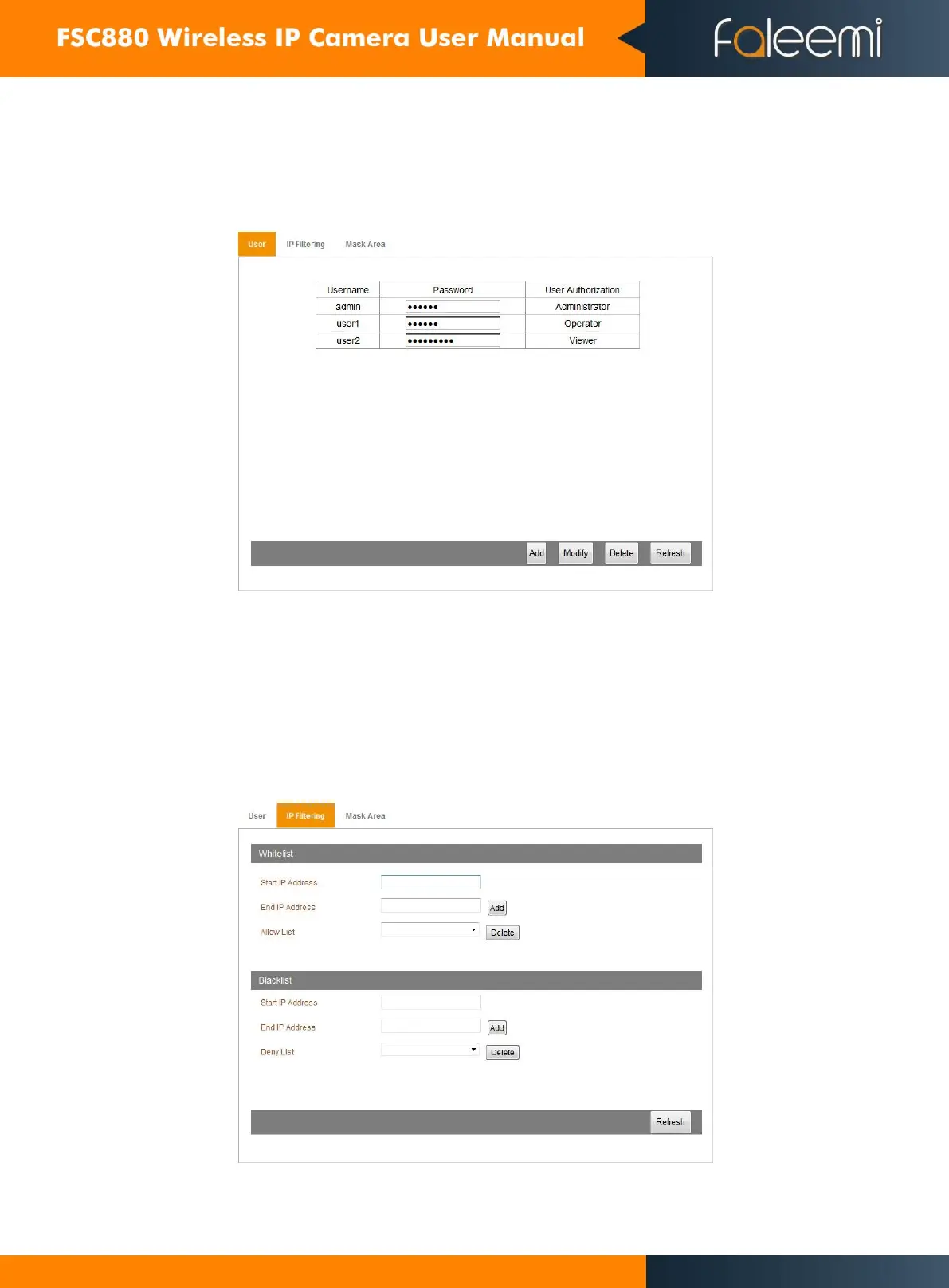 In IP Address filter, there are 2 settings: blacklist and whitelist.