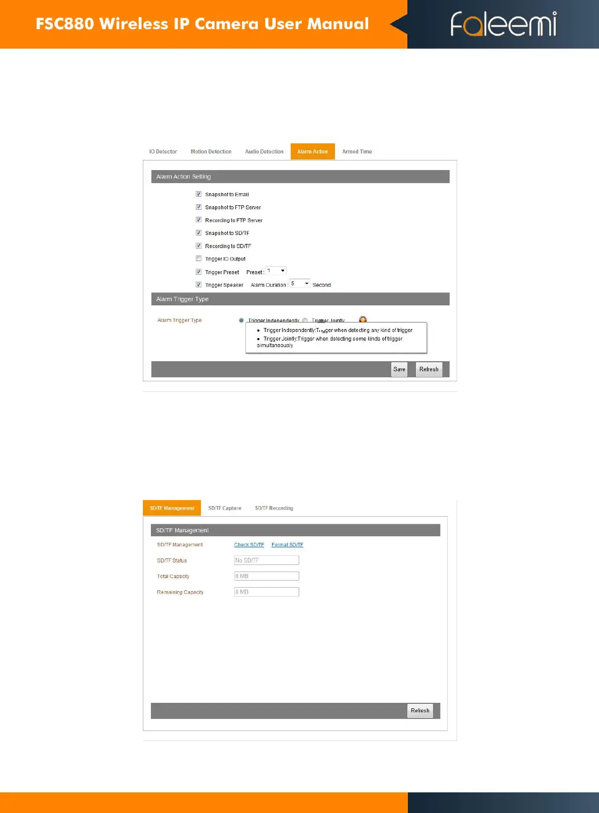 server or SD card, recording to FTP server or SD card, and trigger 10 output.