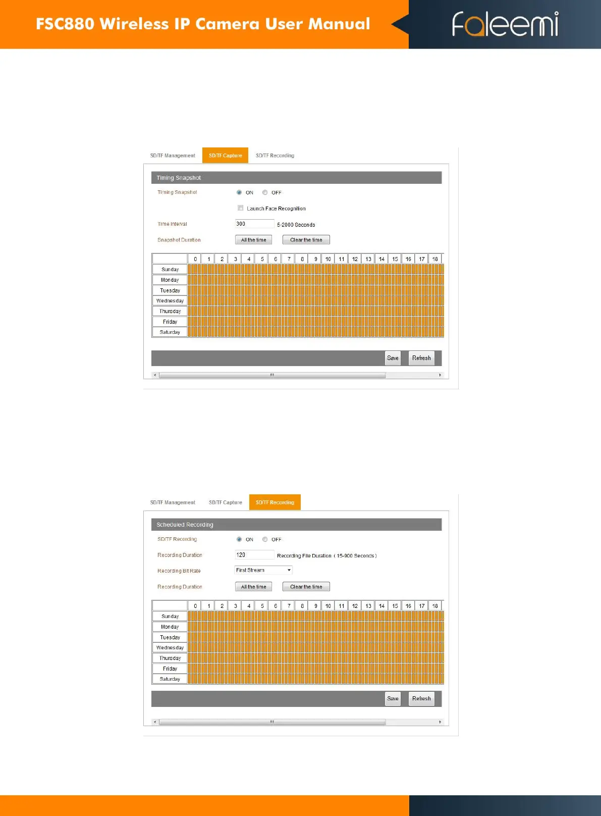 Access to SD/TF capture, you can enable timing snapshot and set up snapshot time interval and snapshot